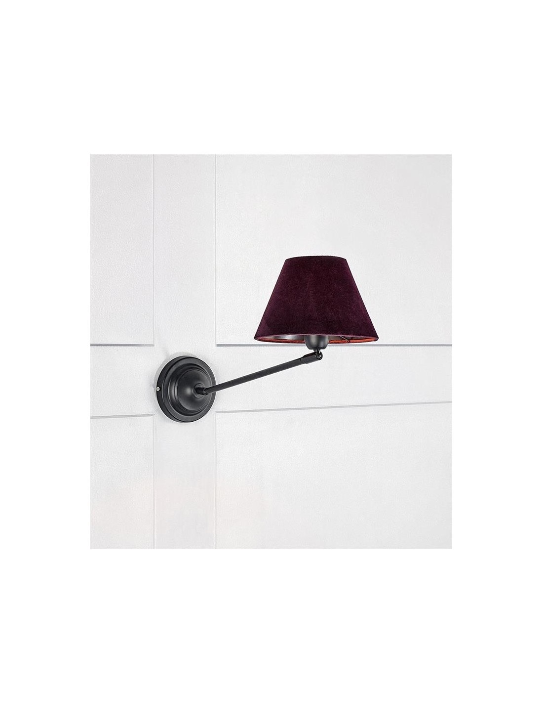 L'applique murale intérieure Garda est composée d'une structure en métal laqué noir mat et d'un abat-jour en velours prune.