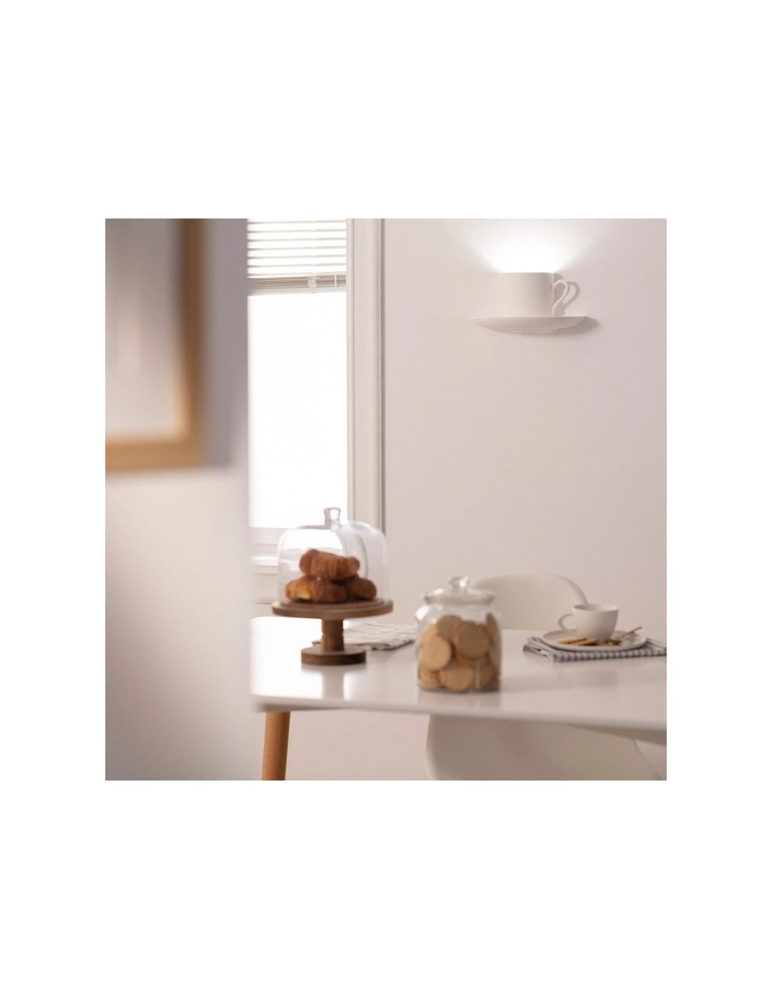 Cette applique murale Led est en matériau composite (plâtre + résine).