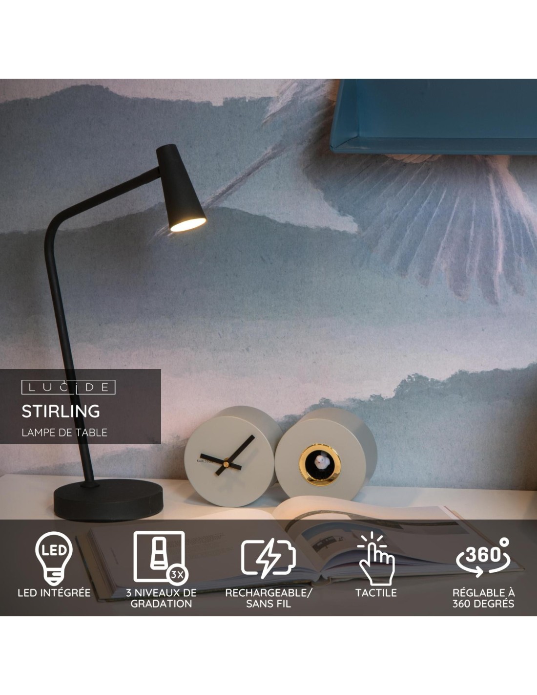 Par simple pression sur l'interrupteur, vous pouvez obtenir 3 niveaux d'éclairement (25, 50 ou 100 %) selon l'ambiance souhaitée.