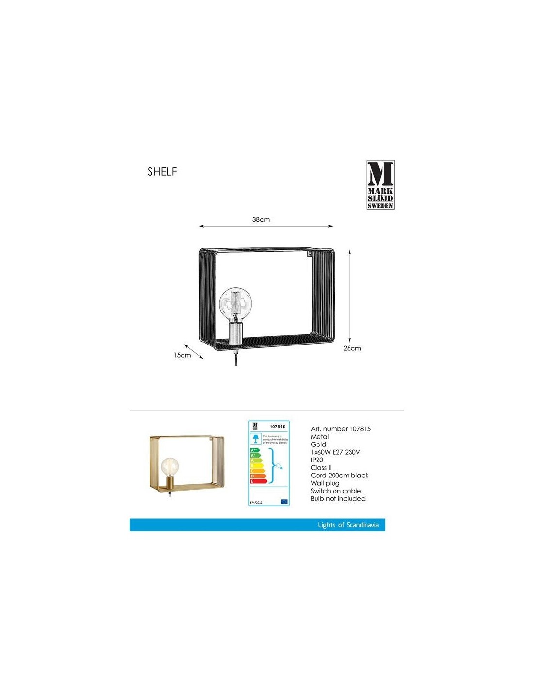 Vous apprécierez l'esthétique simple et le côté pratique de l'Applique Markslöjd Shelf dorée.