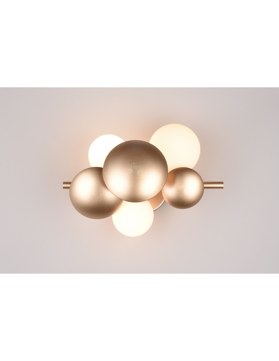 Le design captivant de l’applique Bubble crée un jeu d’ombres et de lumières saisissant, parfait pour ajouter un effet "wow" dans votre salon ou votre couloir. Le contraste entre le verre blanc et le métal doré transforme cet éclairage en véritable œuvre d'art murale, qui s’adapte facilement à tout type d’intérieur moderne ou élégant.