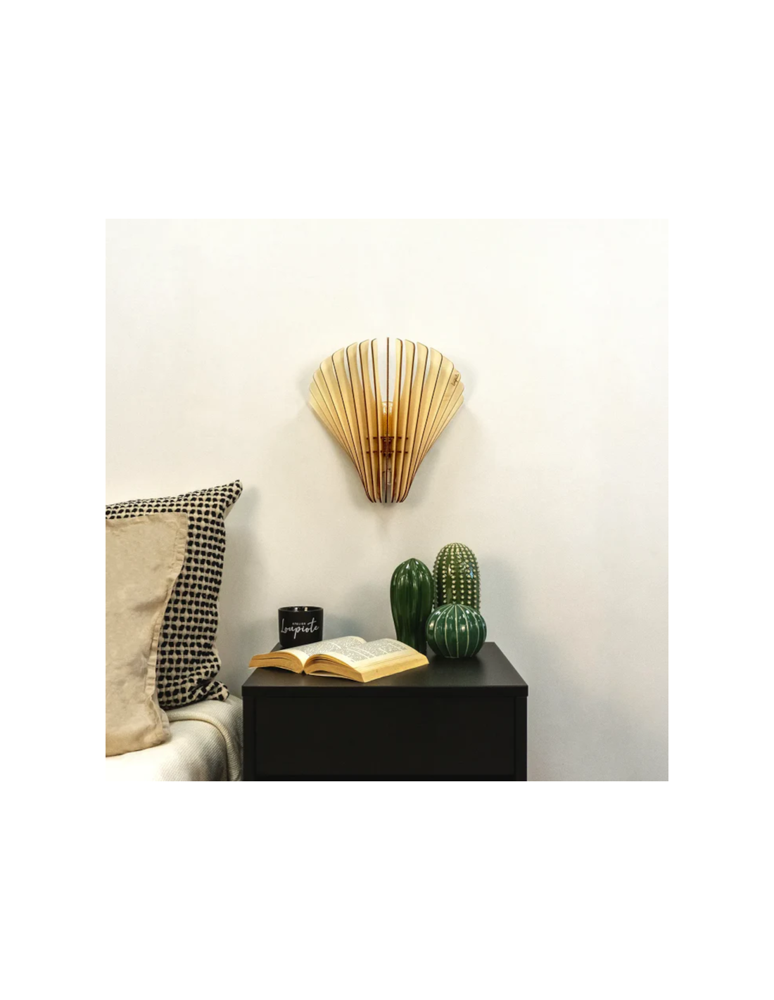 L'Atelier Loupiote, créateur français a imaginé pour vous cette applique en bois de peuplier naturel.