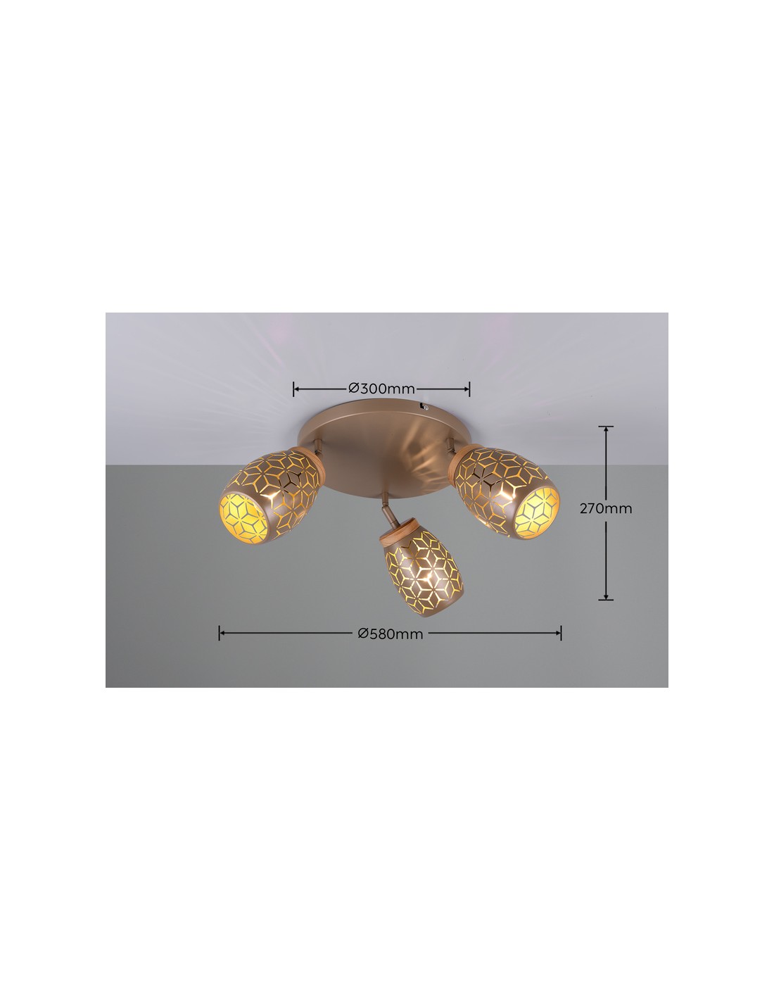 L'applique Bidar de Trio en finition café est un modèle en métal fonctionnant avec 3 ampoules E14 (10 W max chacune), non incluses.