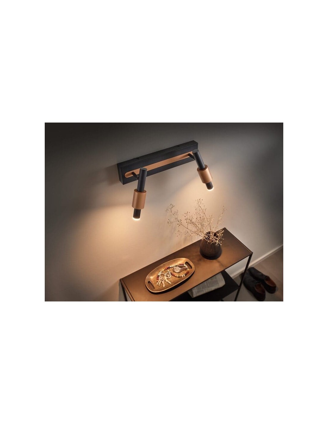 Ses deux spots orientables apportent du rythme et une touche graphique tout en permettant de créer des mises en lumière personnalisées.