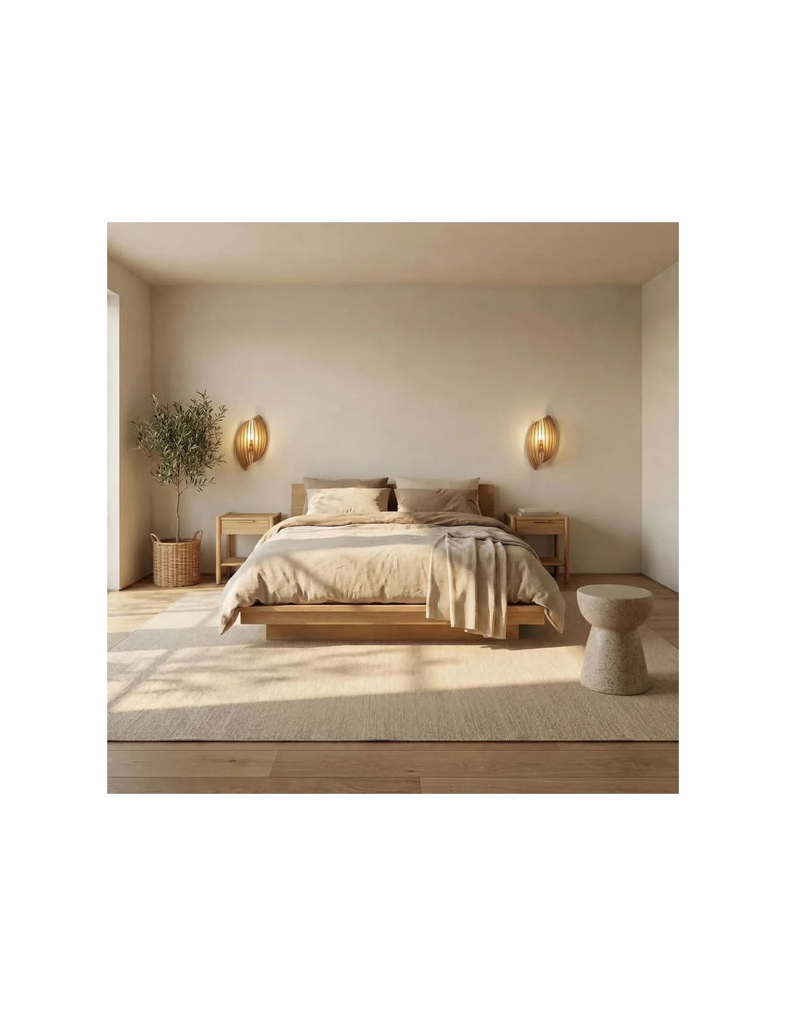 Sa finition teinté chêne apporte une touche élégante et naturelle, idéale pour une ambiance contemporaine et apaisante.