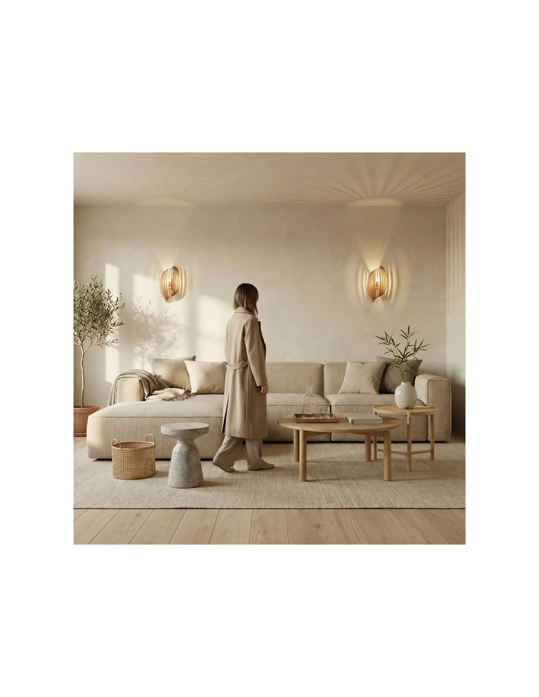 Fabriquée artisanalement en France à partir de peuplier issu de forêts gérées durablement, elle adopte une forme inspirée du coquillage, composé de lamelles courbées qui diffusent une lumière douce et chaleureuse tout en créant de subtils jeux d'ombres.