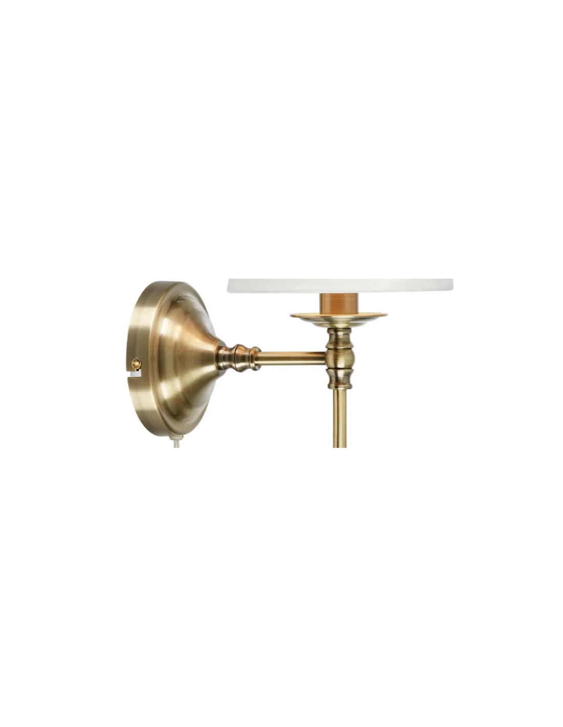 L'applique murale Manor de la marque Markslojd associe un pied en laiton antique à un abat-jour en tissu plissé blanc, créant un design classique et chaleureux pour tout intérieur.