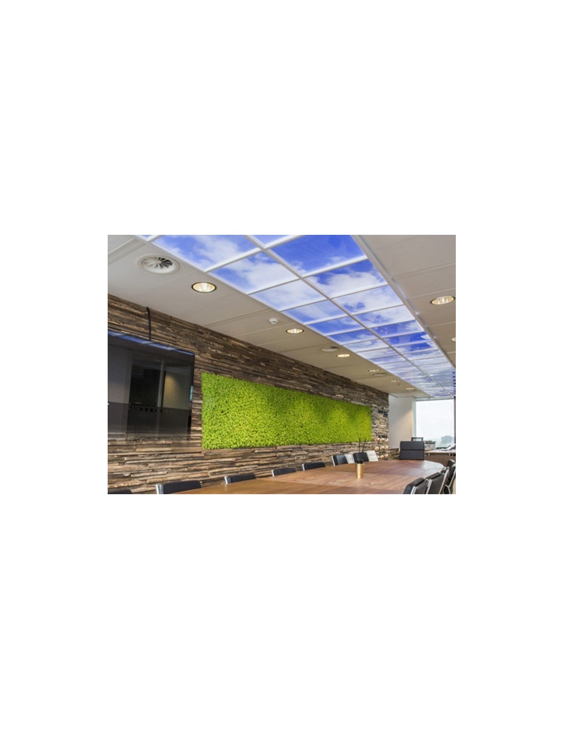 La dalle Led Sky est en polycarbonate et cadre aluminium. Elle est composée d'un cadre blanc et d'un centre imprimé aspect ciel bleu nuageux.
