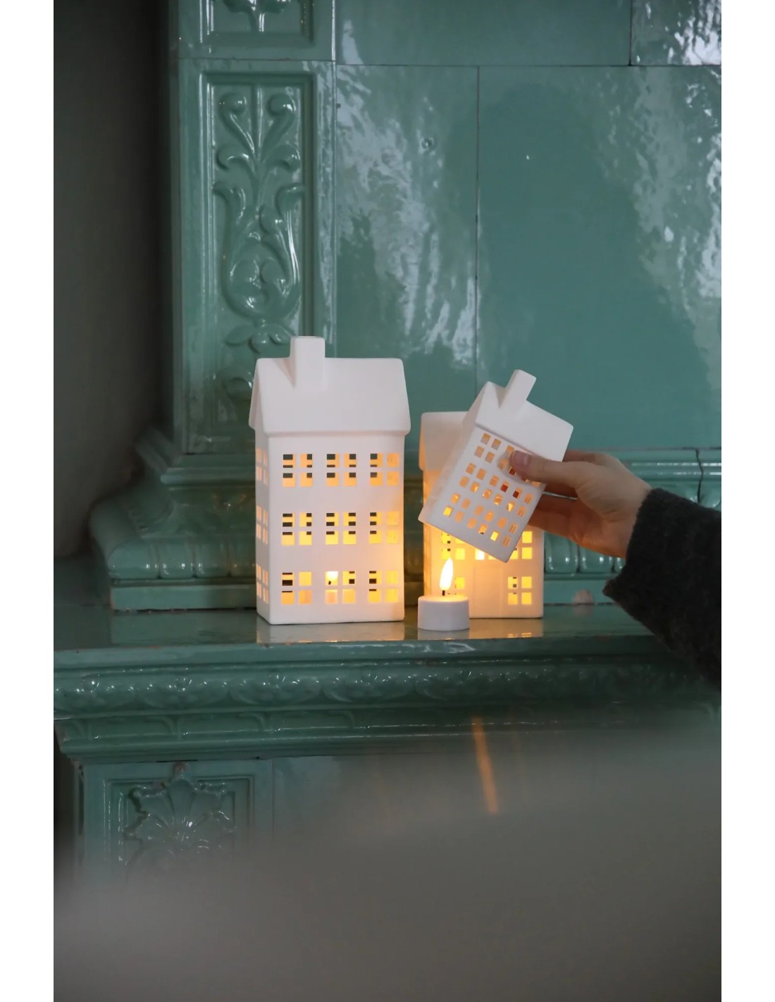 Chaque maison est accompagnée d’une bougie chauffe-plat avec LED intégrée, diffusant une lumière blanc chaud comprise entre 2300 et 2500K avec un angle de diffusion de 360°.