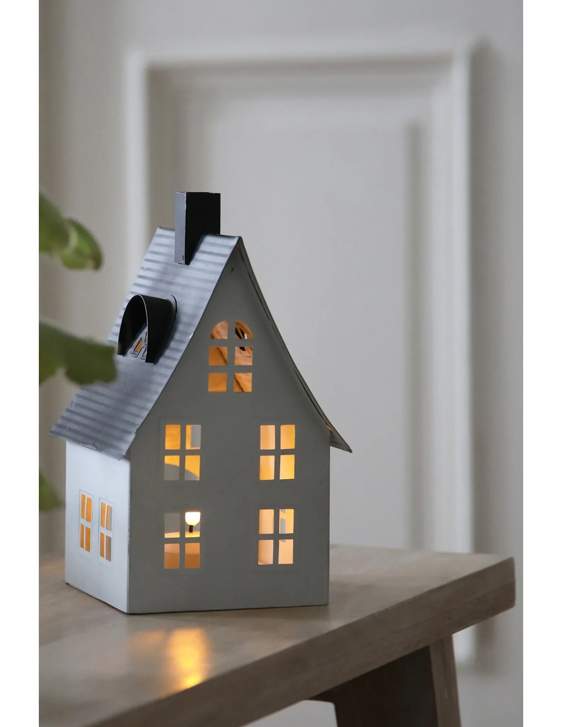 Le vrai + : décoration de table en forme de maison avec bougie LED à piles
