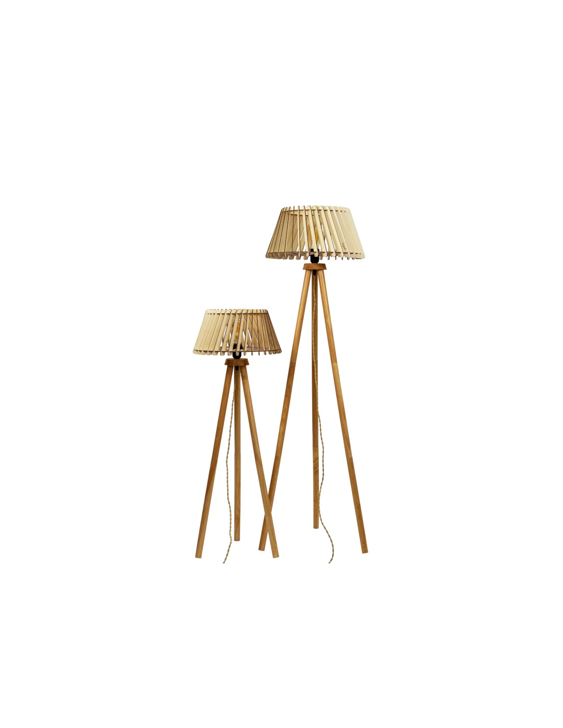 Cette lampe sur pied est composée d'un câble haut de gamme en textile coton, d'une douille E27 et d'une structure en lamelles de bouleau livrés en kit à monter soi-même.