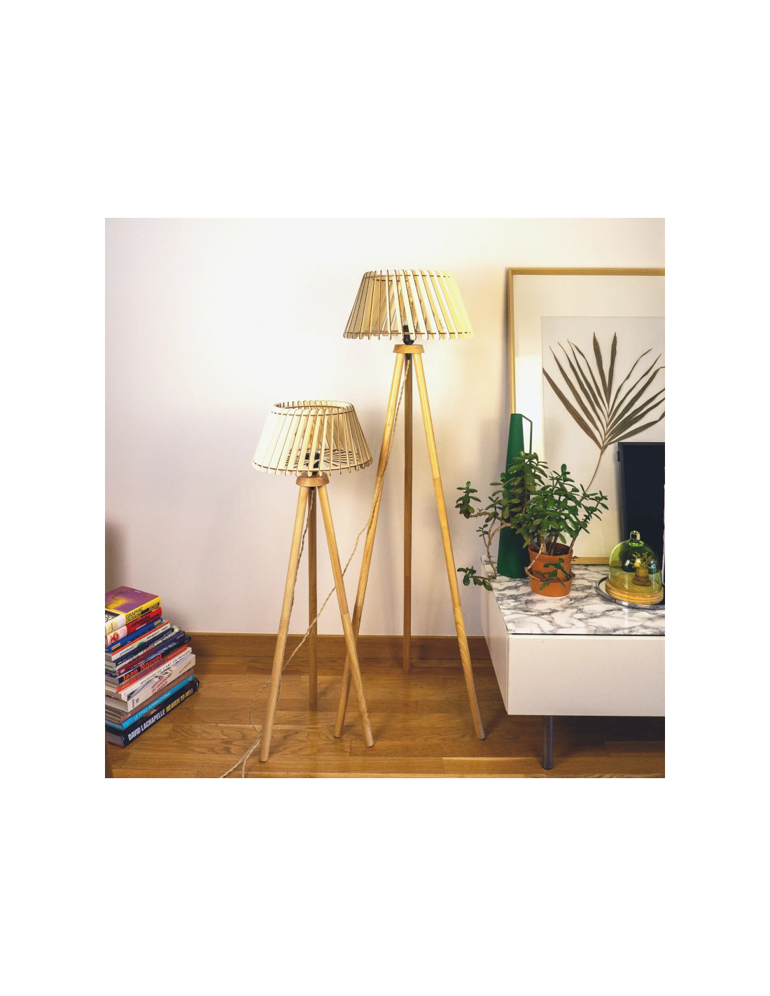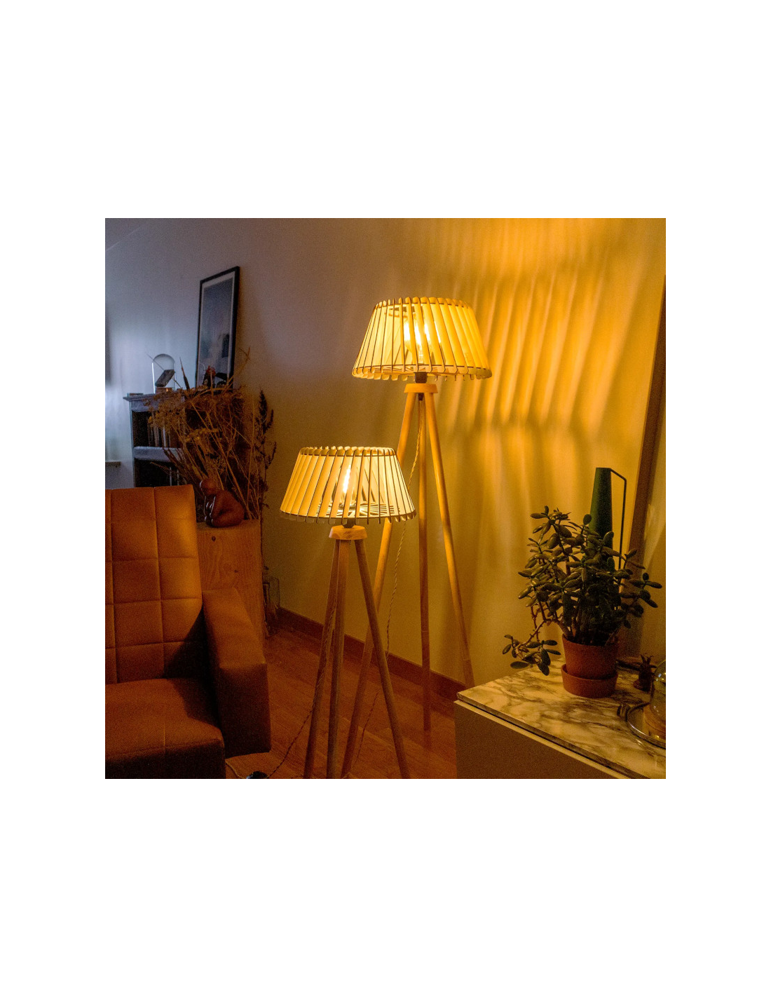 Ce lampadaire, une fois allumé, projettera des jeux d'ombre délicats au mur.