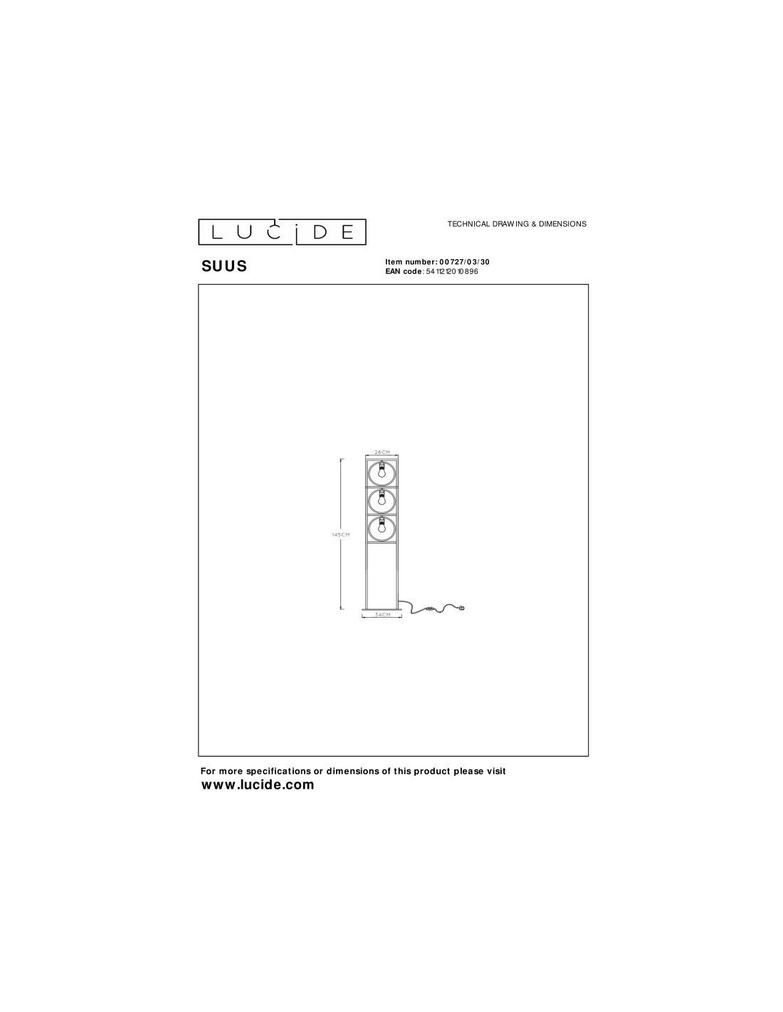 • Dimensions: Lon.34 x Larg.24 x Haut.145 cm