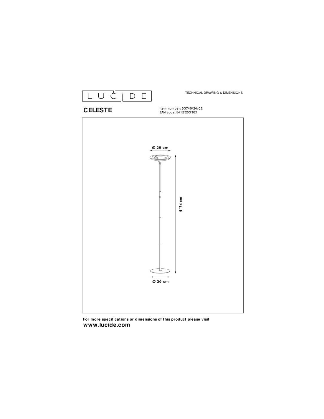 Celeste ne peut se résumer en un seul mot : élégant, minimaliste, intemporel et un peu surnaturel. La hauteur subtile de 174 centimètres de ce lampadaire en métal de haute qualité vous permet de le placer confortablement dans n'importe quelle pièce de votre maison. L'abat-jour rond et compact d'un diamètre de 28 centimètres ressemble à une petite soucoupe volante et rayonne à la fois vers le haut et vers le bas. De plus, il vous suffit simplement de régler la luminosité en utilisant le capteur tactile sur le support. Avec Celeste dans la maison, vous vous retrouverez dans les hautes sphères. Explorez l'univers.
