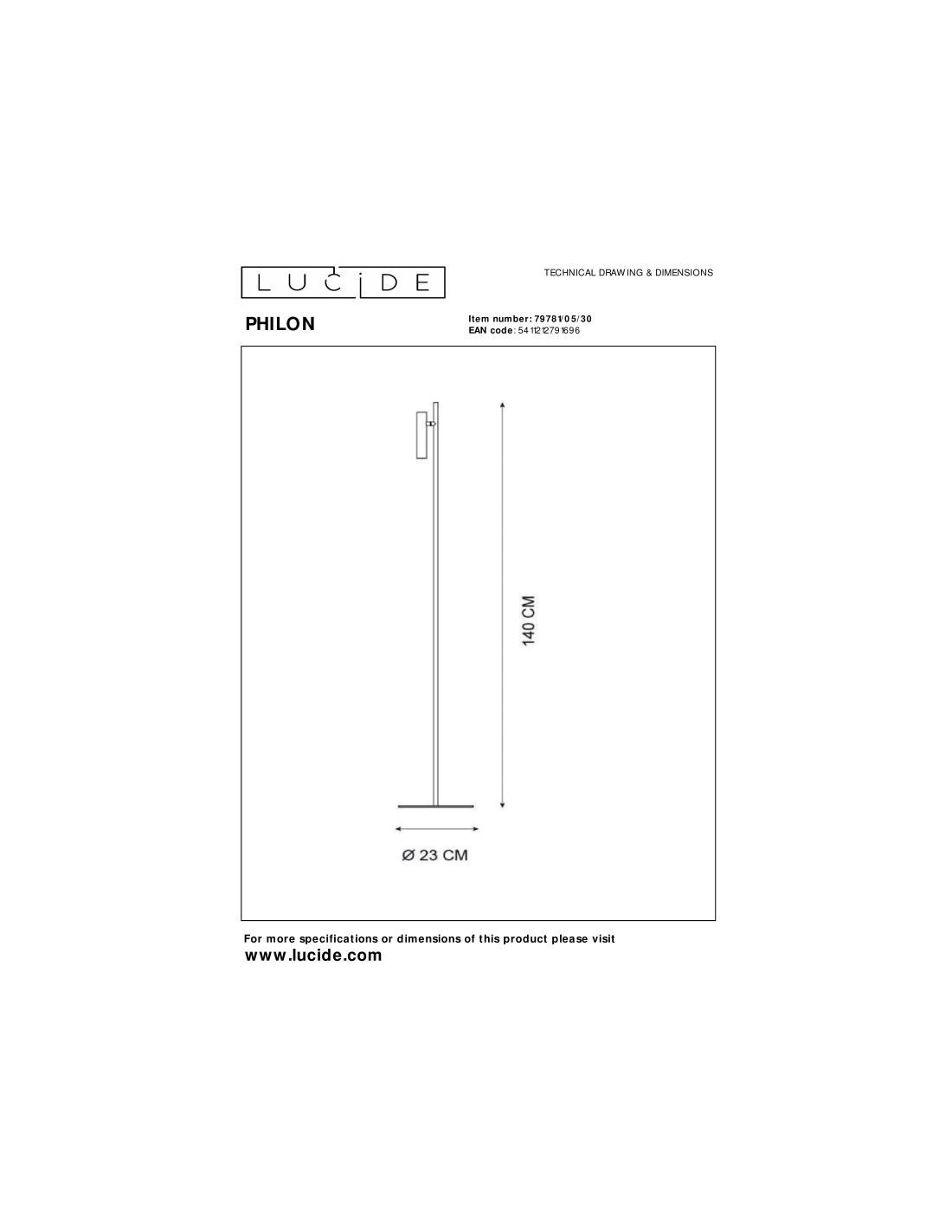 Lampadaire /liseuse 1 source lumineuse noir - Lucide - Philon