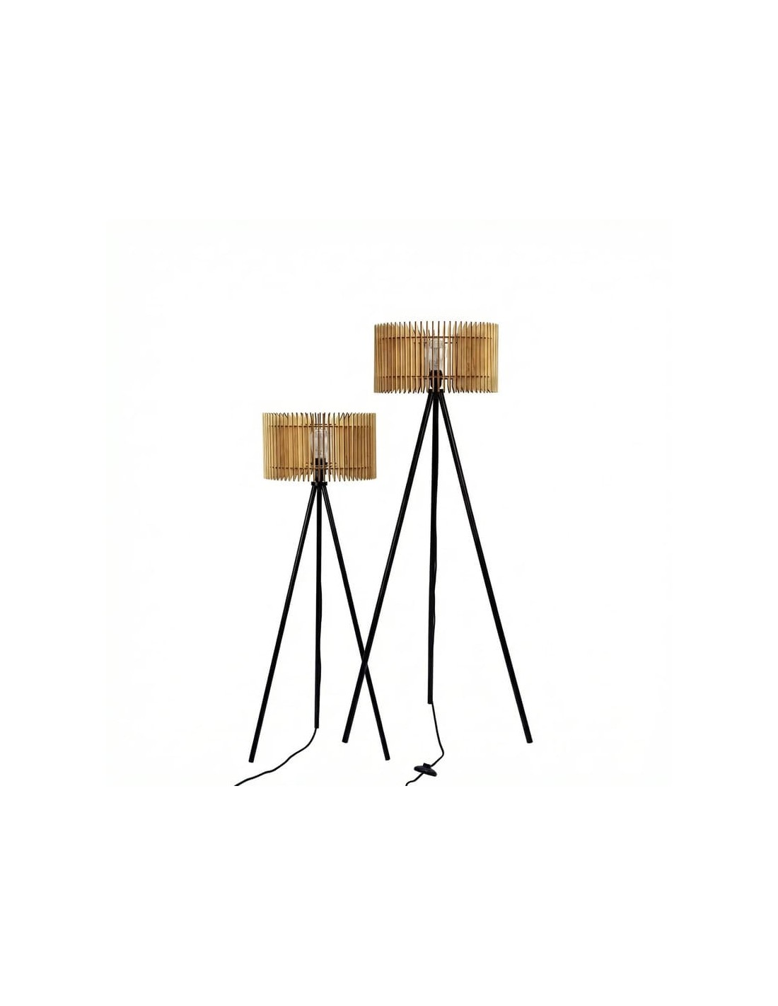 Chaque lampadaire est équipé d'un câble textile en coton de 2,80 m avec interrupteur, et fonctionne avec une ampoule LED à culot E27 (puissance recommandée : de 6 à 10 W).