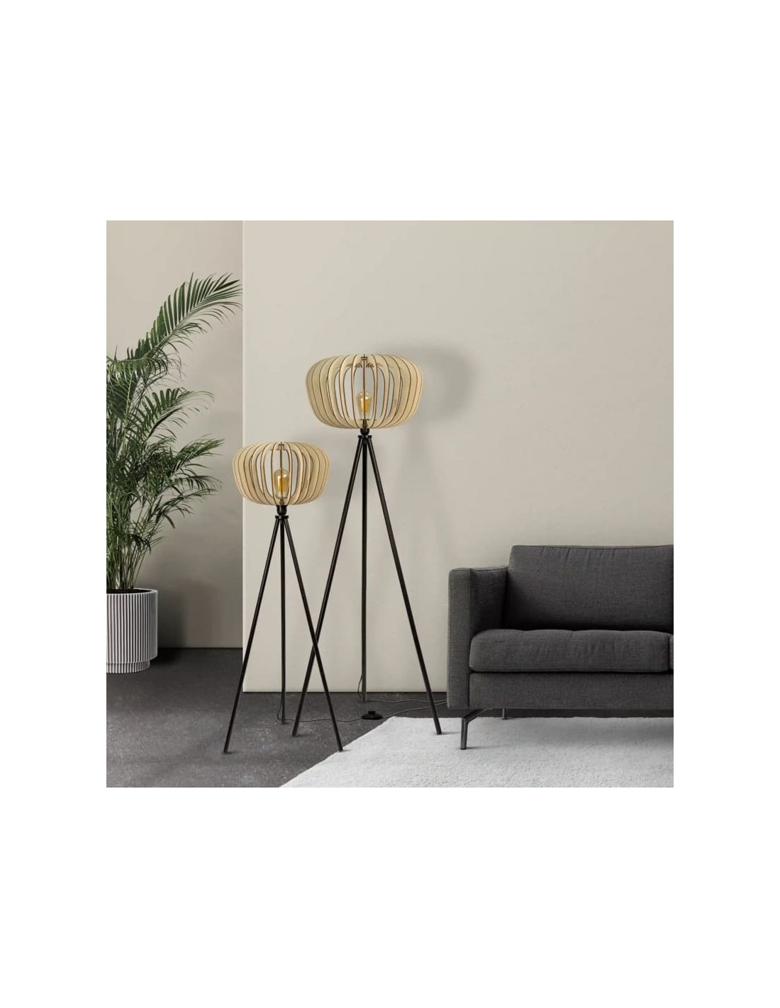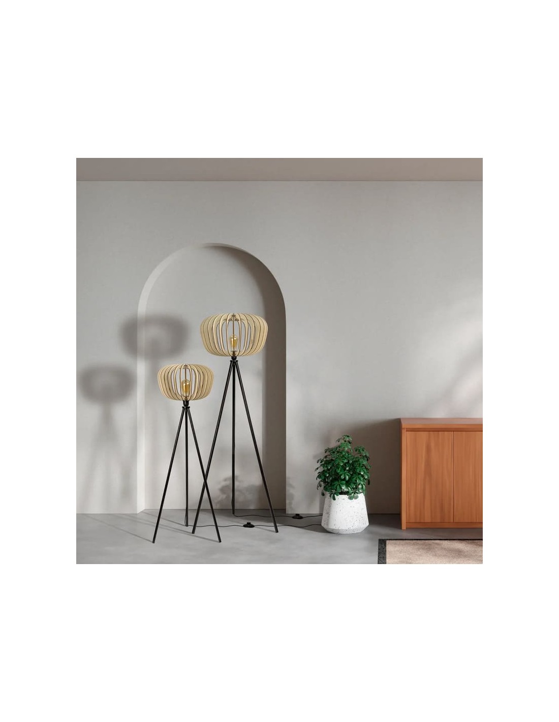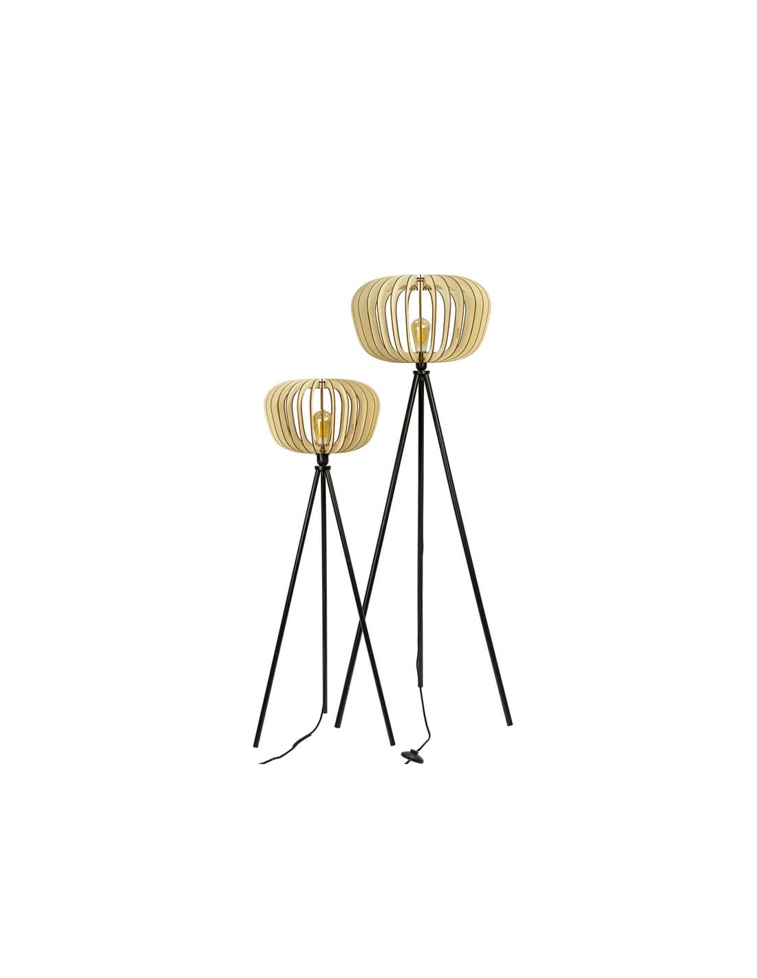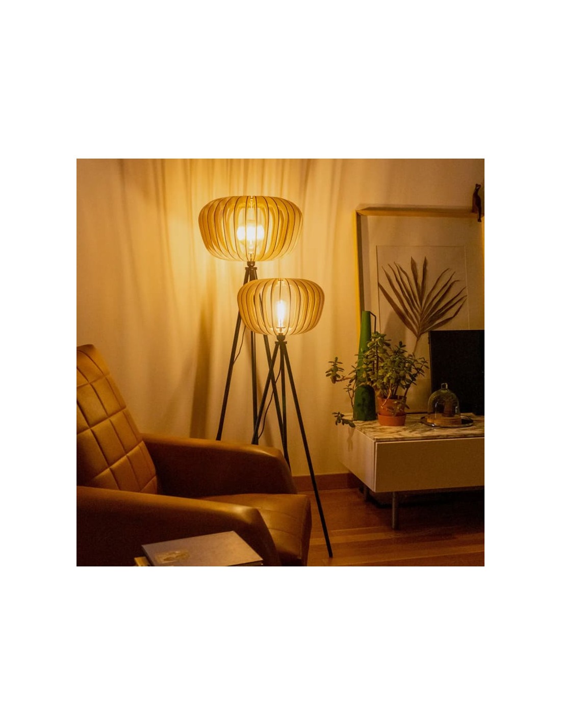 Lampadaire Led noir en bois clair - Atelier Loupiote - Duo Agathe