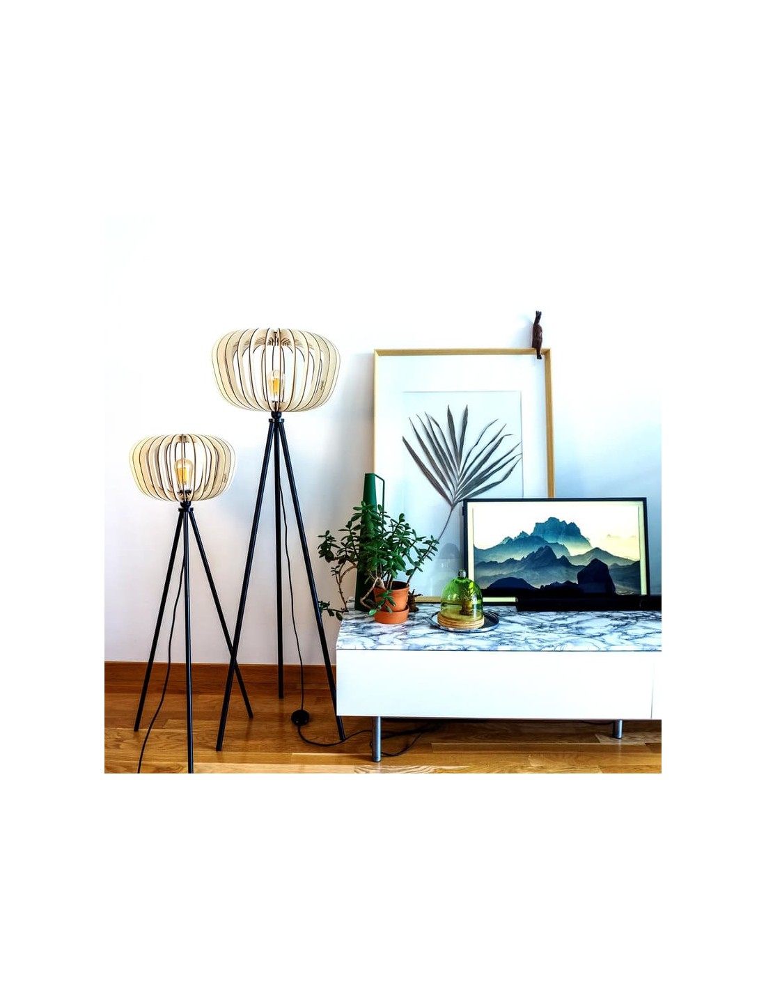 L'Atelier Loupiote, créateur français a imaginé pour vous ce lampadaire en bouleau naturel avec piètement noir mat.