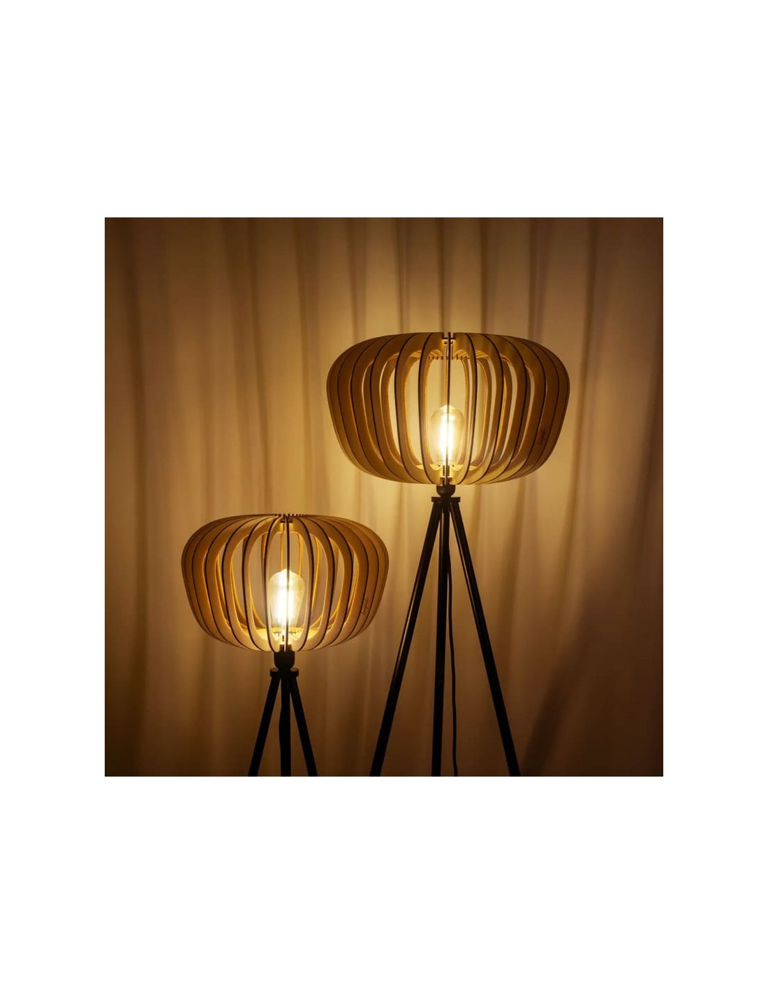 Leurs abat-jours en bois de peuplier non traité, issus de forêts gérées durablement, présentent des courbes enveloppantes qui diffusent une lumière chaleureuse et décorative.