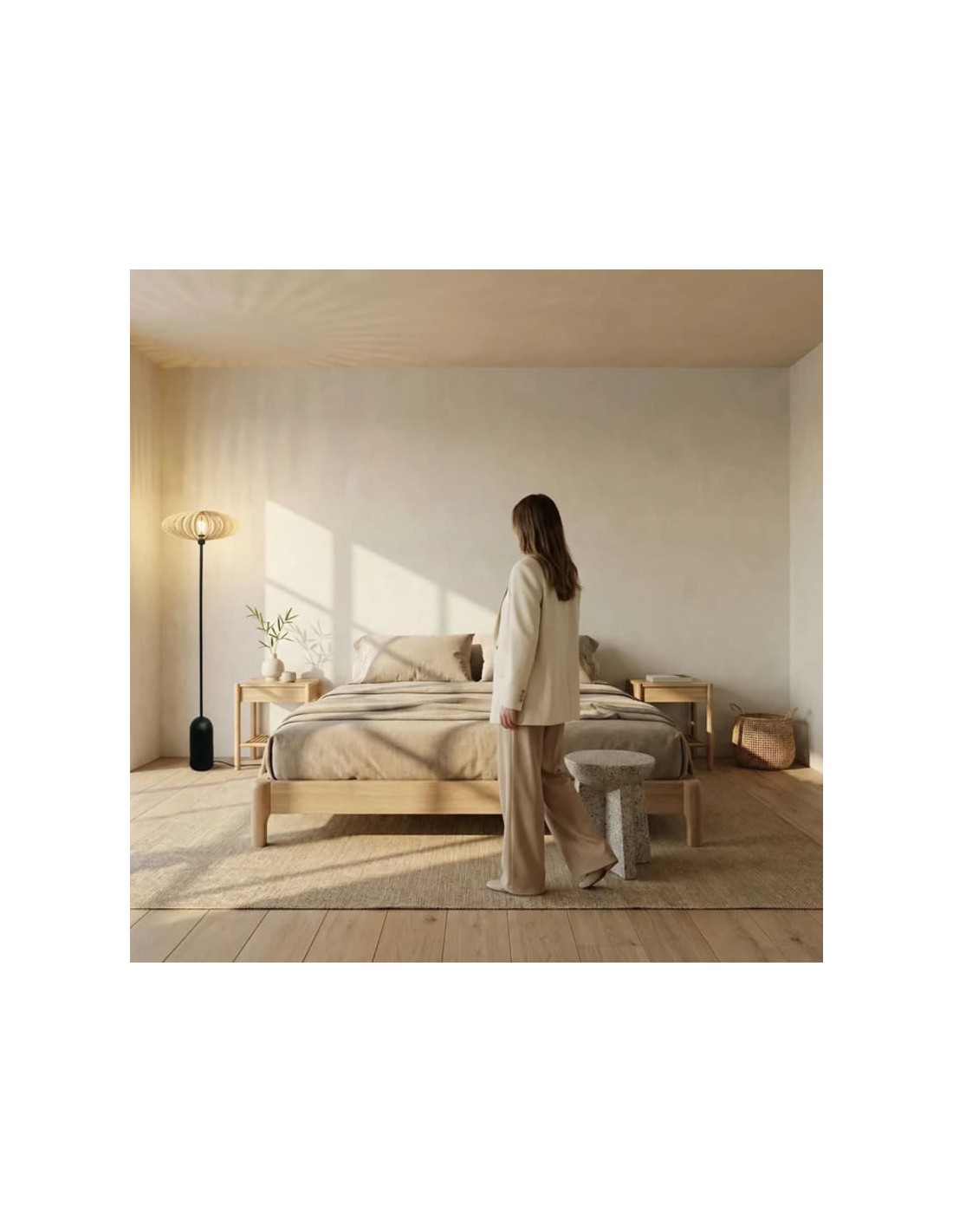 L'Atelier Loupiote, créateur français a imaginé pour vous ce lampadaire en bouleau naturel avec piètement noir mat.