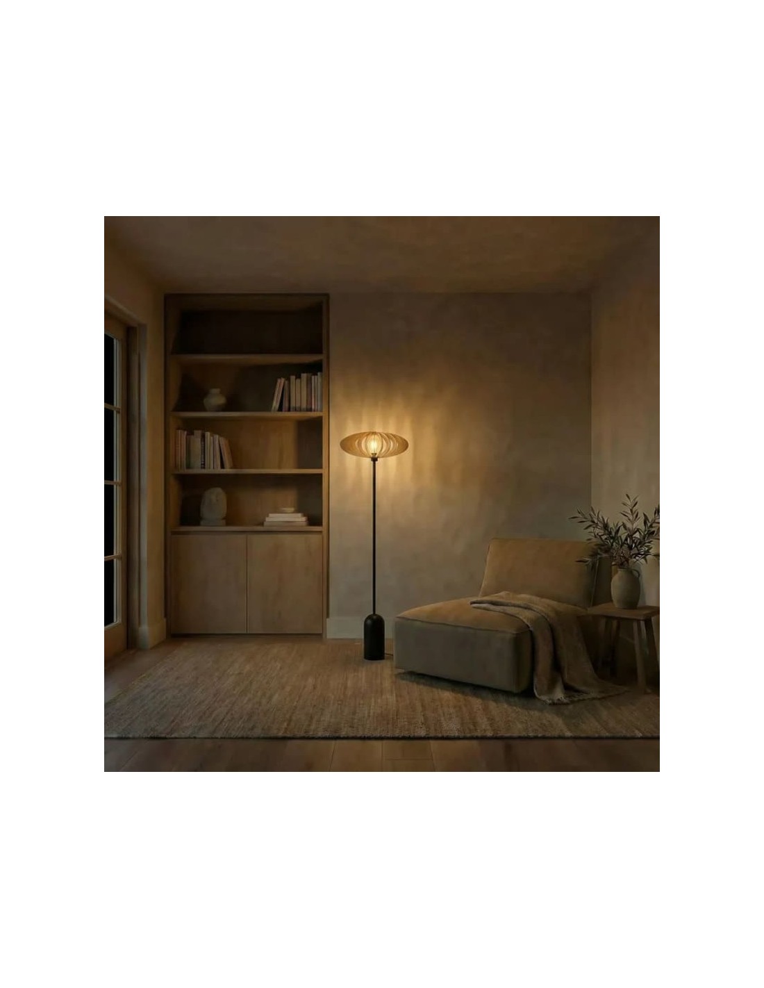 Ce lampadaire, une fois allumé, projettera des jeux d'ombre délicats au mur.