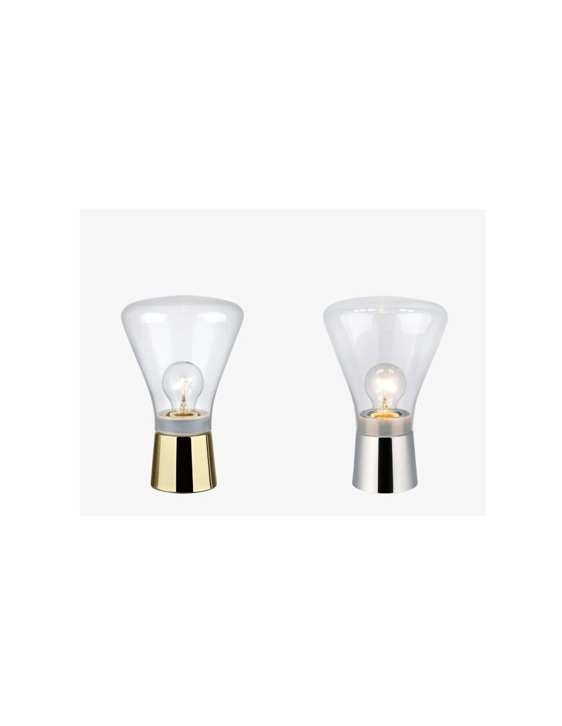 Les designers de Markslöjd ont choisi le laiton ou le chrome, le verre et une esthétique sobre et épurée pour cette lampe de table.