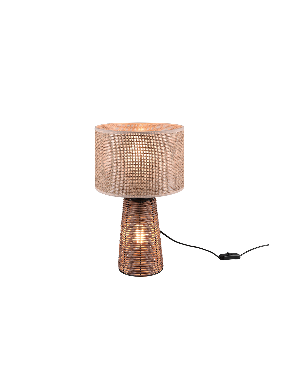 Une ampoule est intégrée dans son pied en rotin pour un très bel effet.