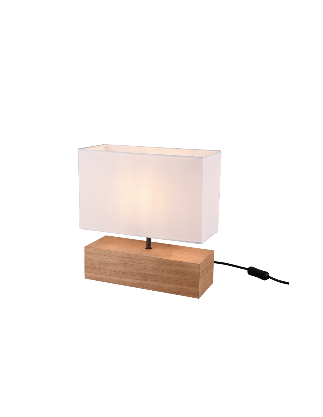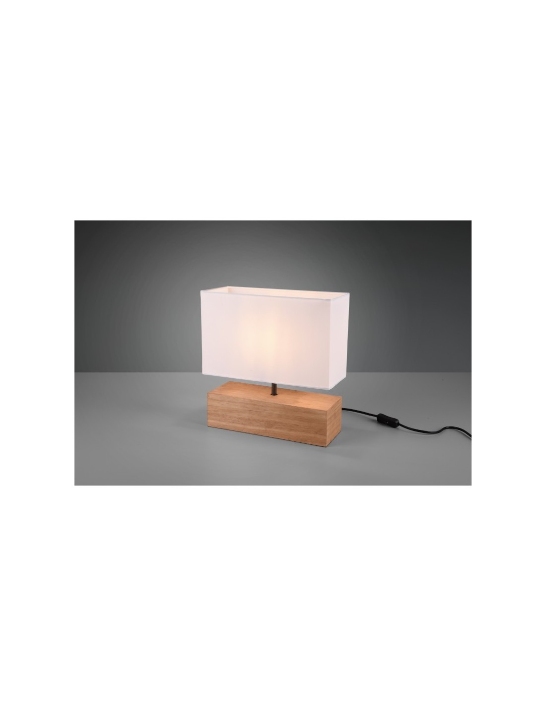 Elle est constituée d'un pied en bois de forme rectangulaire et d'un abat-jour en textile de couleur blanche.