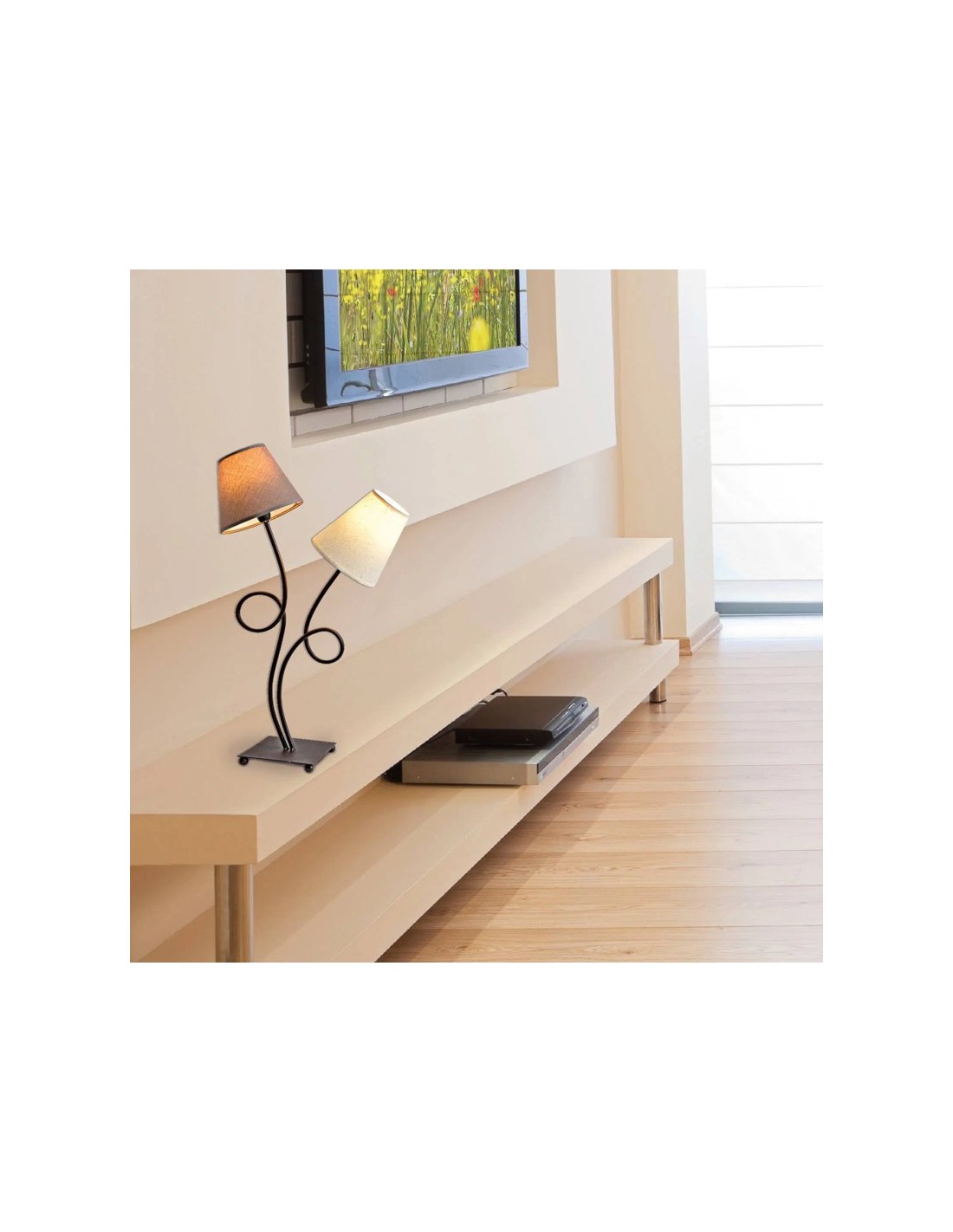 Cette lampe de table led est constituée d'un pied en métal noir mat et de 2 abat-jour en tissu ivoire et taupe.