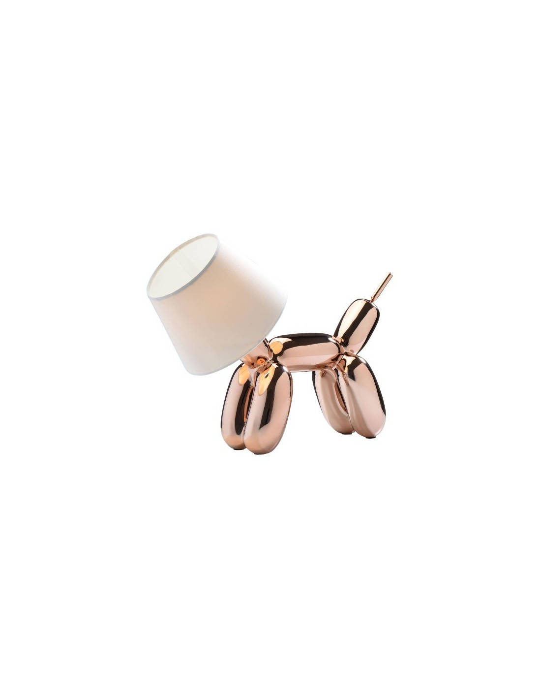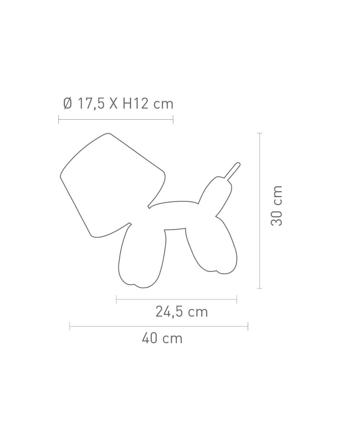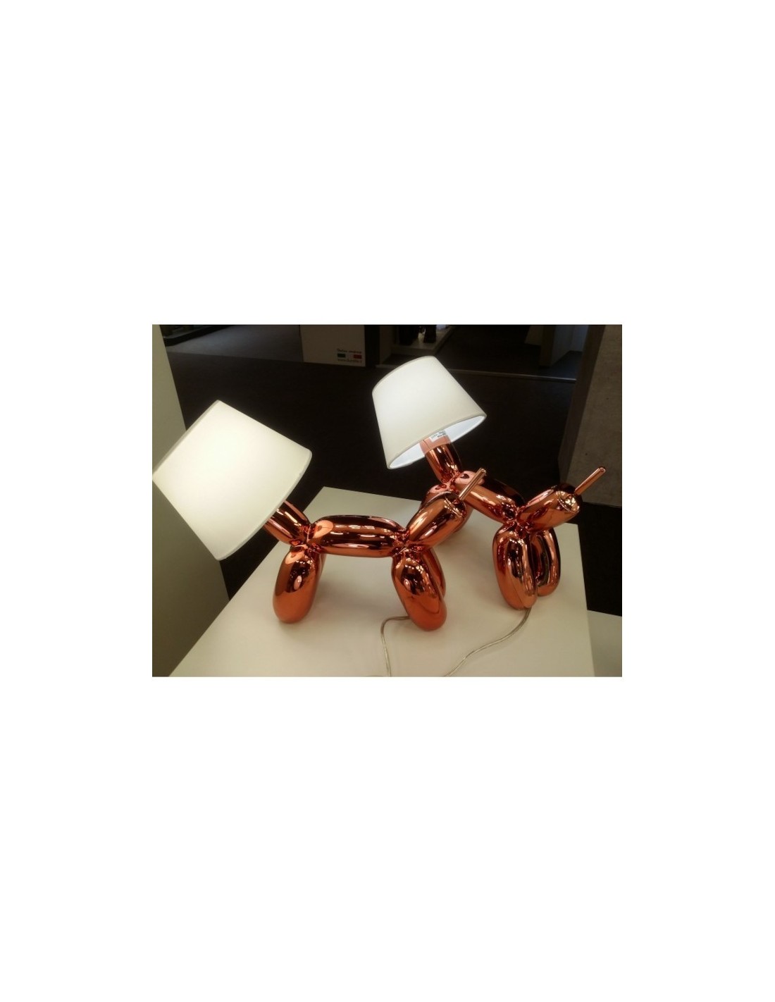 Avec son pied en résine et son abat-jour en textile blanc, la lampe Doggy, créée à l'image des animaux en ballons de baudruche s'harmonisera parfaitement avec un intérieur contemporain ou introduira une touche décalée dans une décoration ancienne ou rustique.