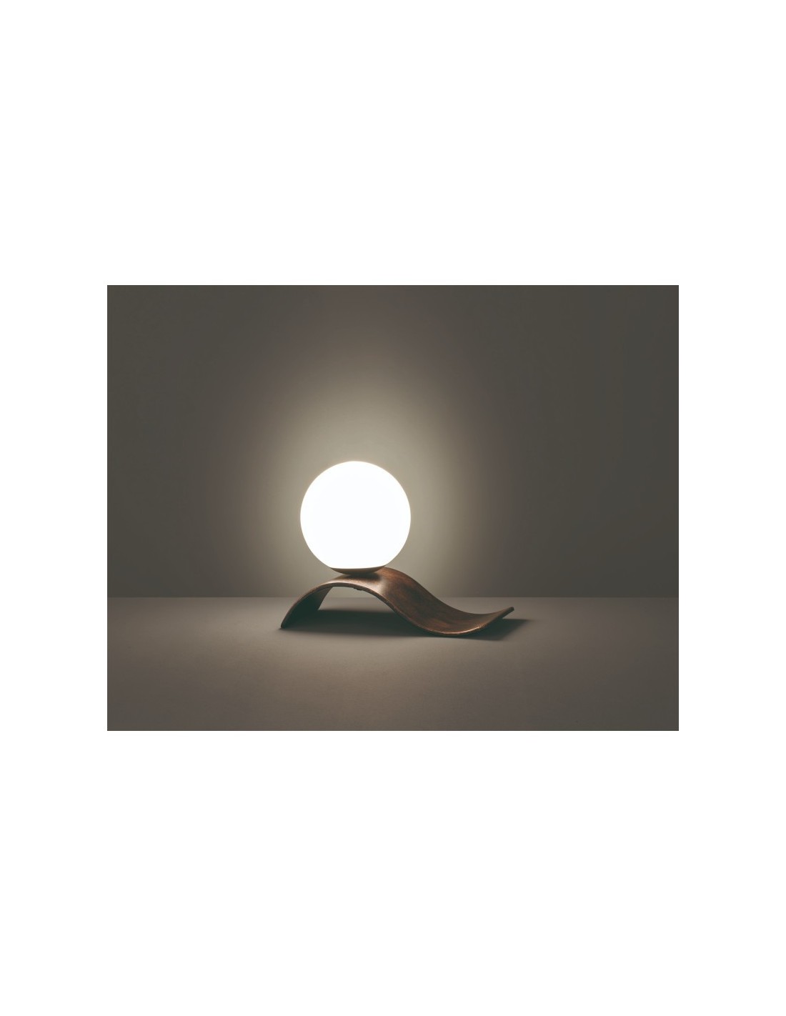 Elle est constituée d'une base en métal sur laquelle est posée une sphére en verre opalin.