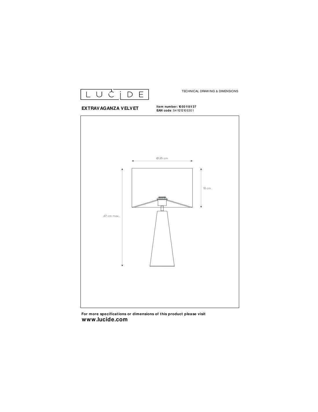 • Consommation énergétique: 1x60W / 230V / Sans intensité variable (Ampoule non incluse)
