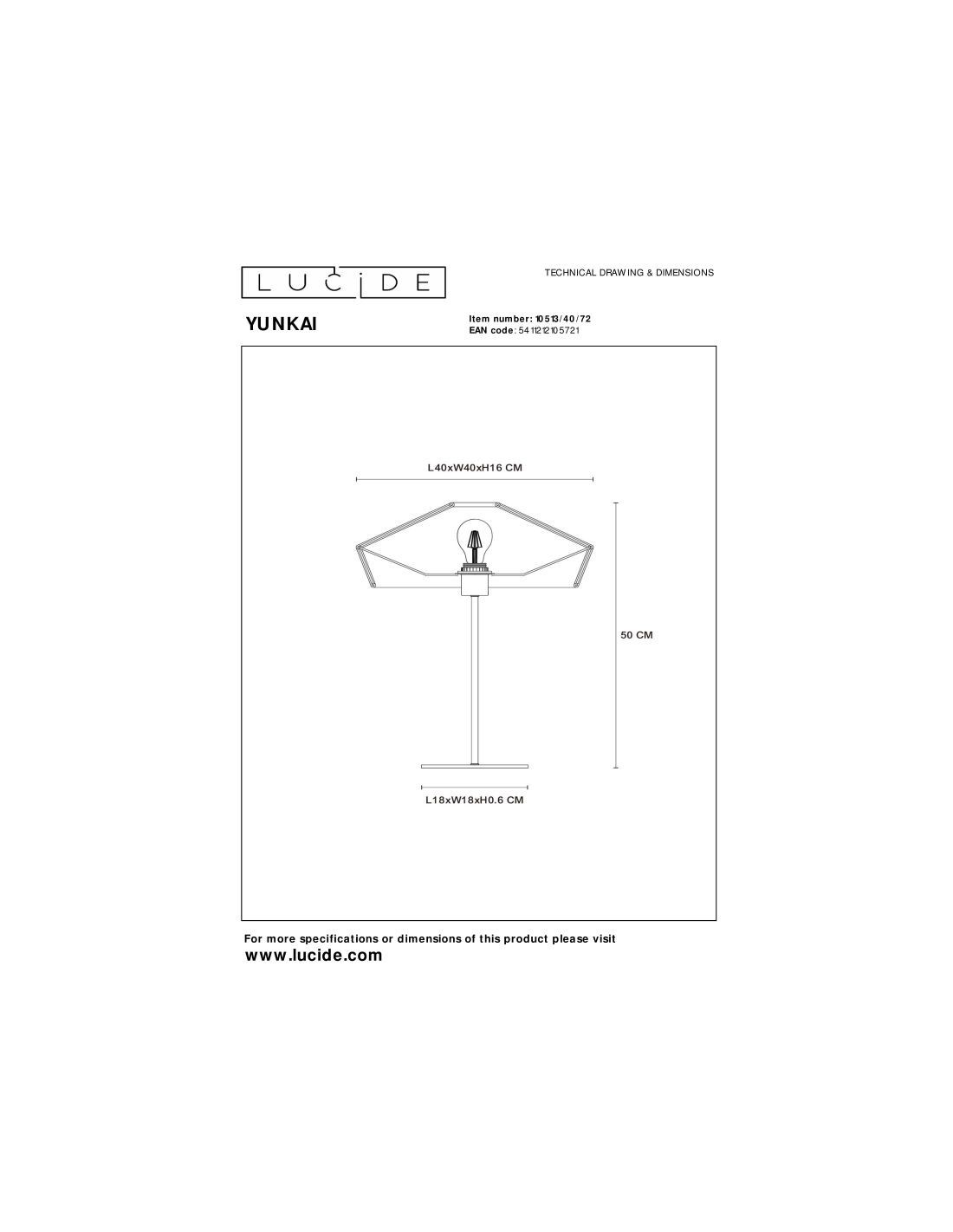 La lampe de table Yunkai de la marque Lucide fonctionne avec une ampoule E27 d’une puissance maximale de 60 W (non incluse) et est compatible avec des sources LED.