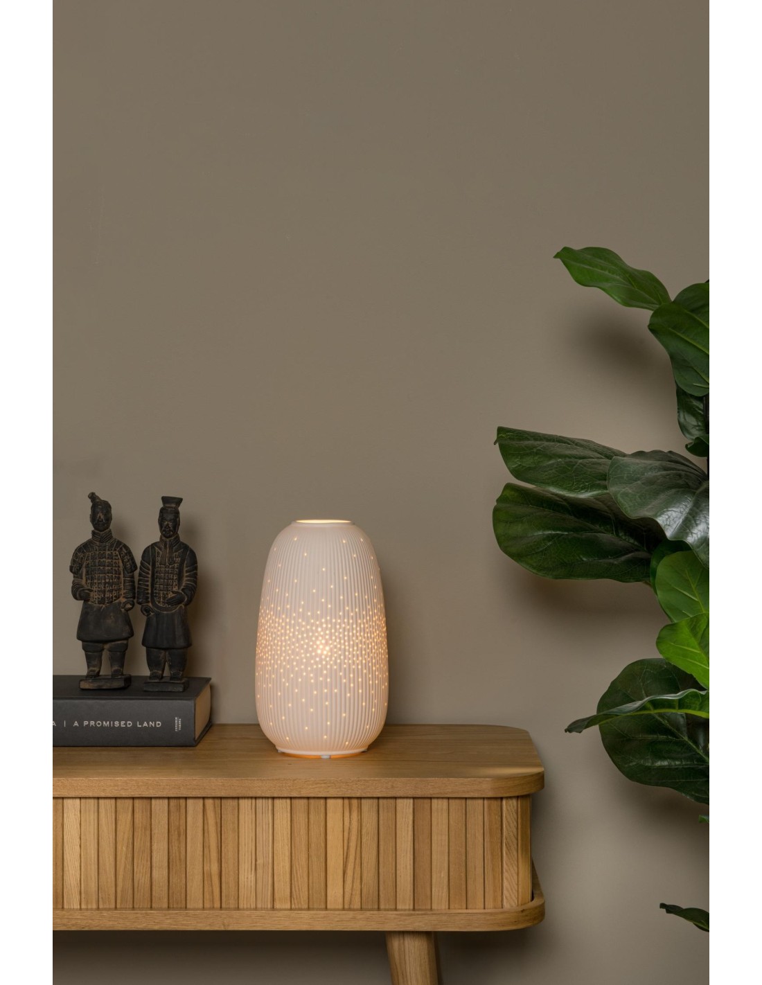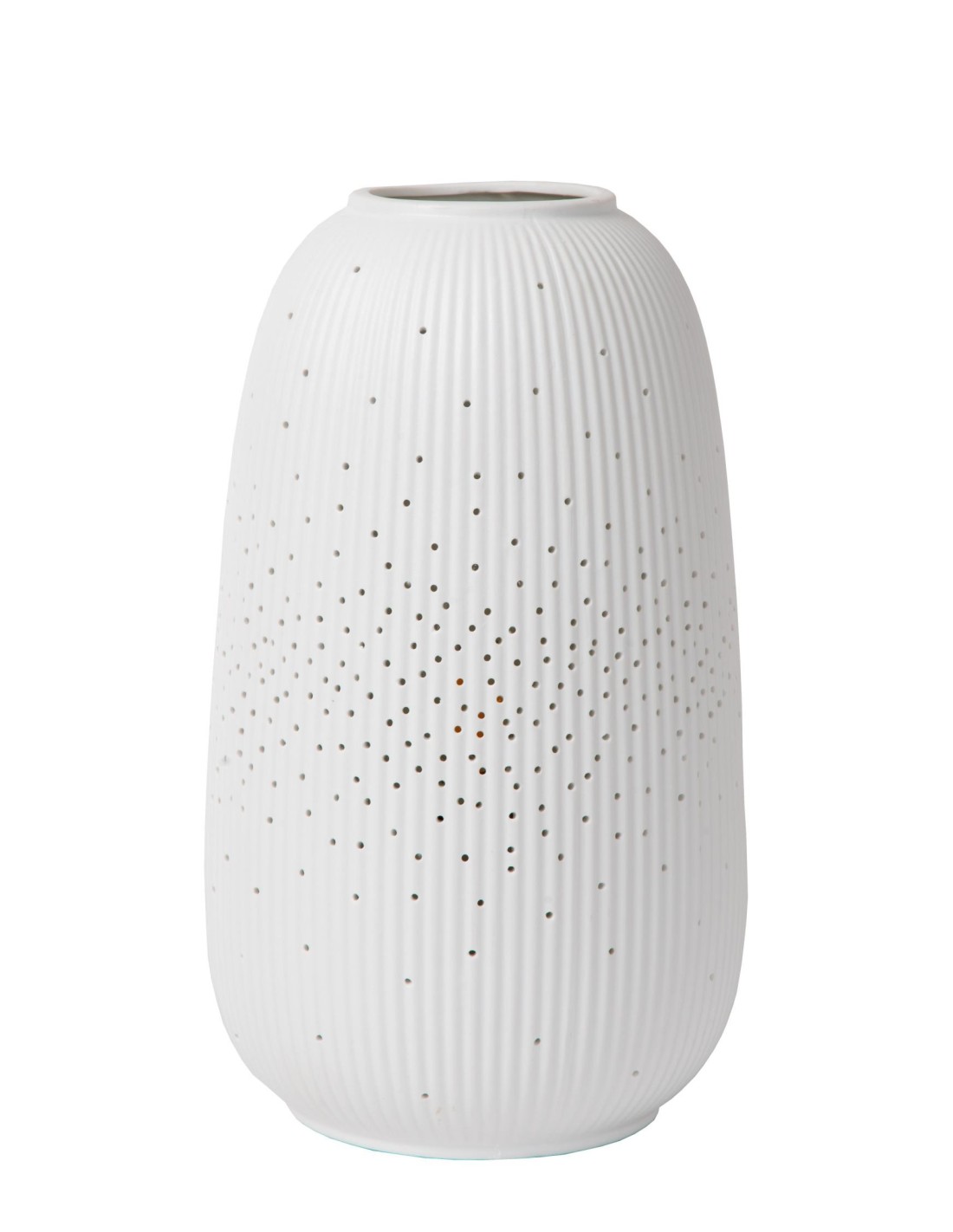 Sa porcelaine blanche délicatement ajourée crée de subtil jeux d'ombre et de lumière, apportant une ambiance douce et élégante à votre intérieur.