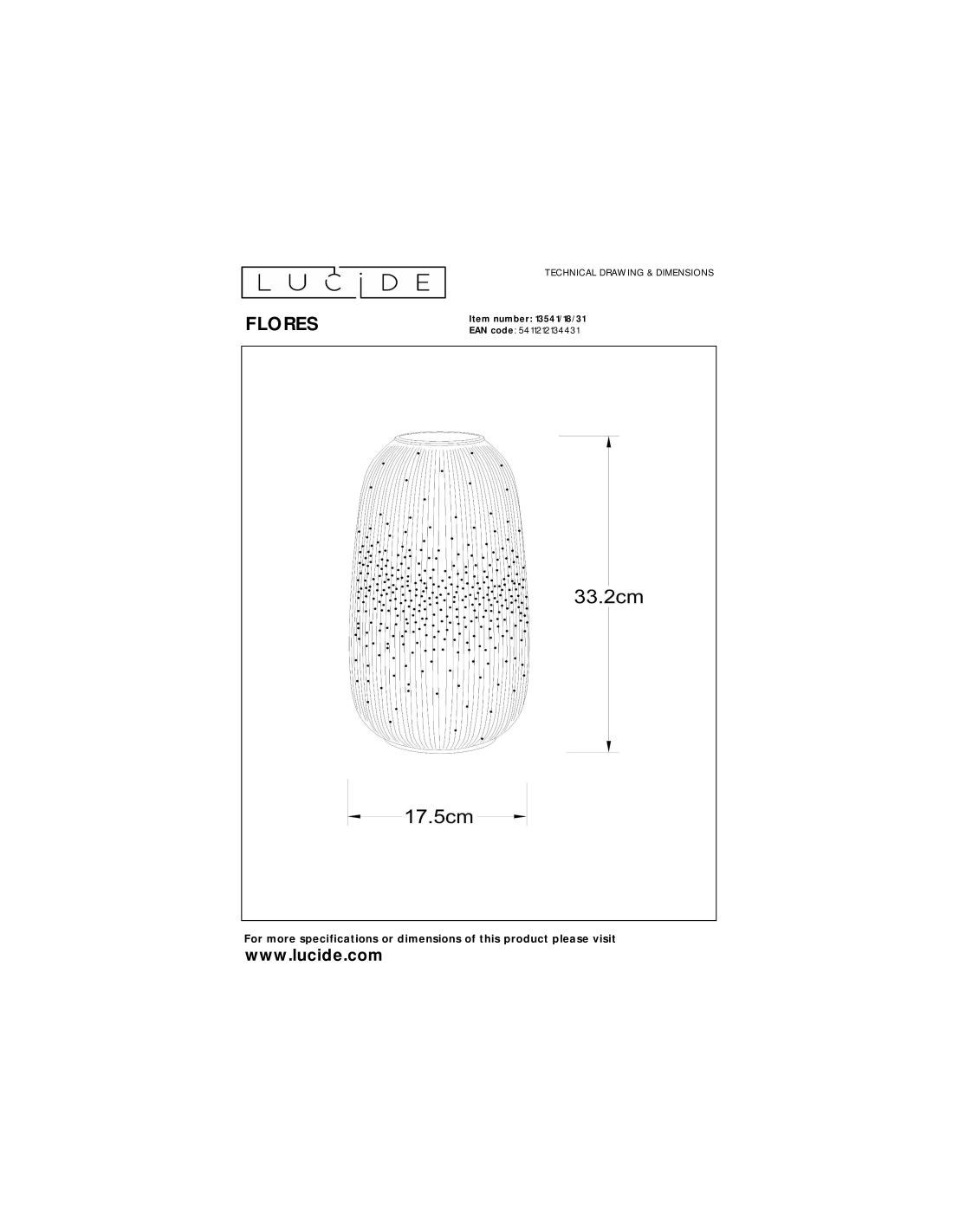 Dimensions (L x l x H) : 17,5 cm x 17,5 cm x 33,2 cm