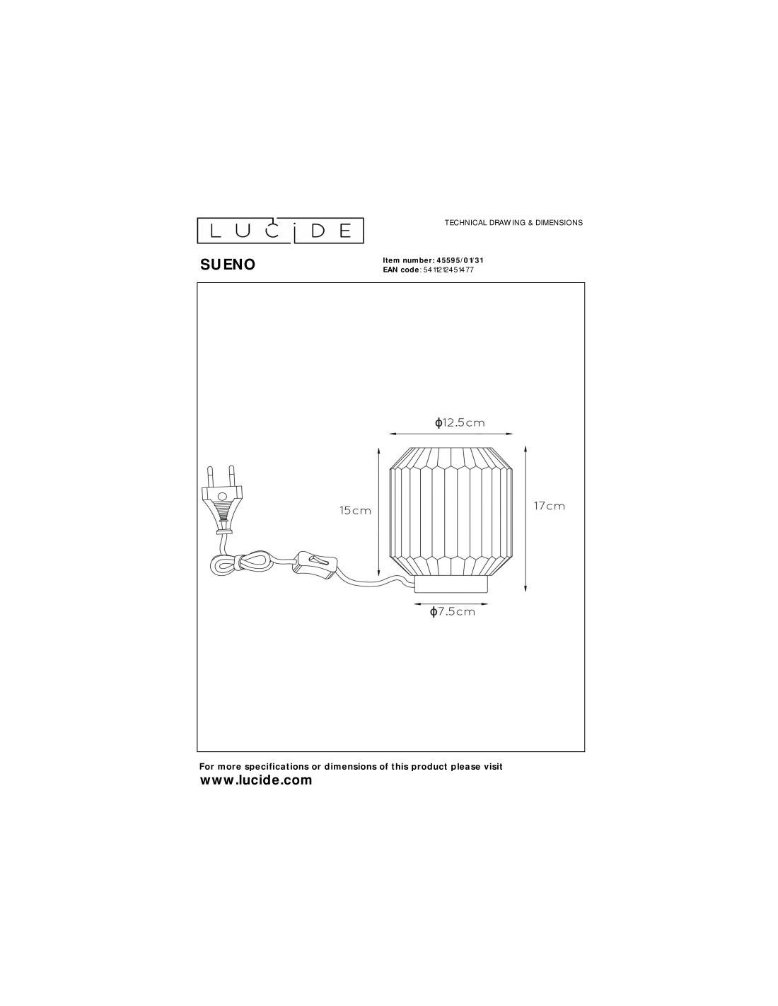 Cette lampe cylindrique mesure 13 cm de diamètre et 17 cm de hauteur, ce qui la rend facile à placer sur une table de chevet, un bureau ou une table d'appoint.