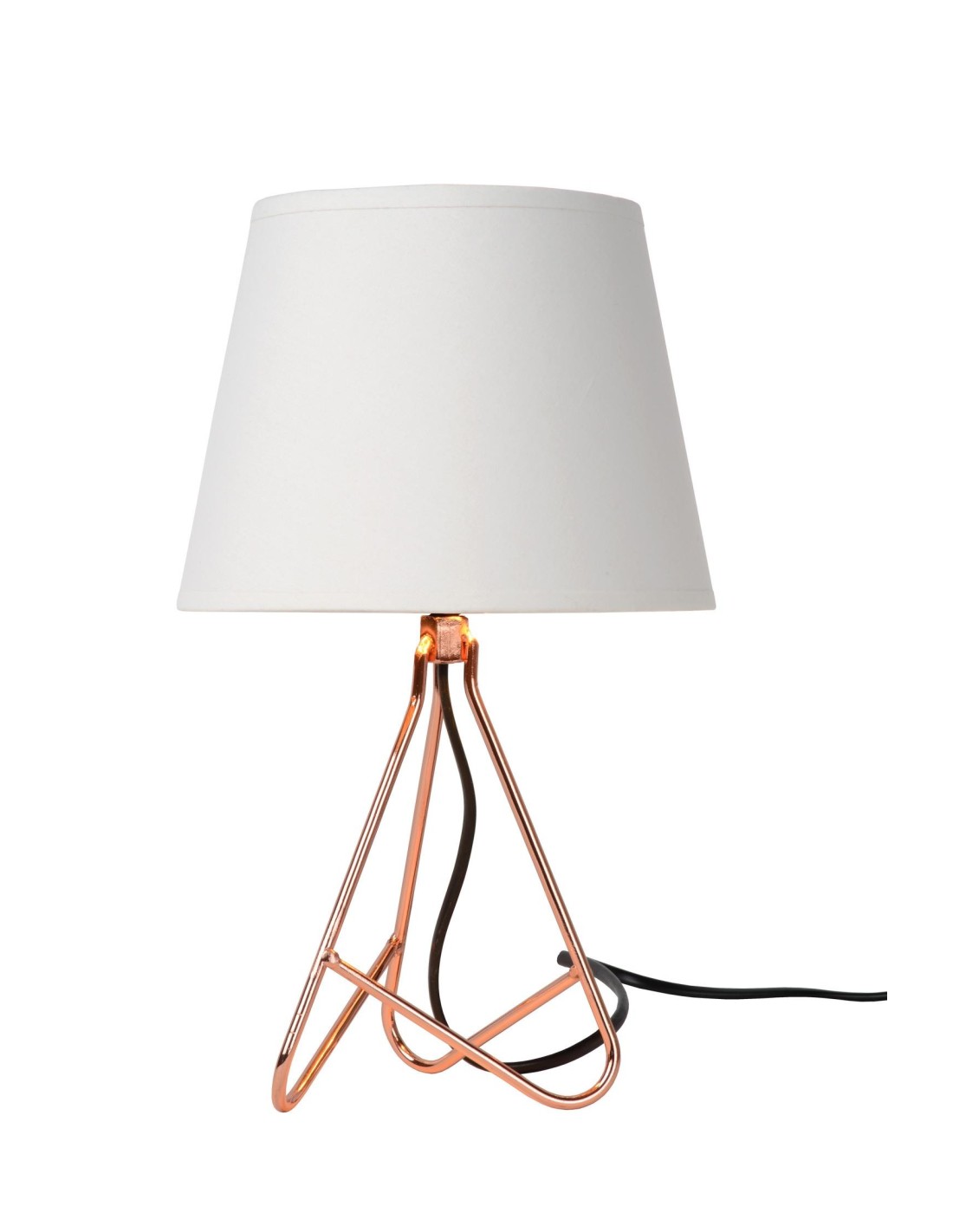 La lampe de table GITTA de la marque Lucide, en blanc et cuivré, séduit par son design moderne et épuré.