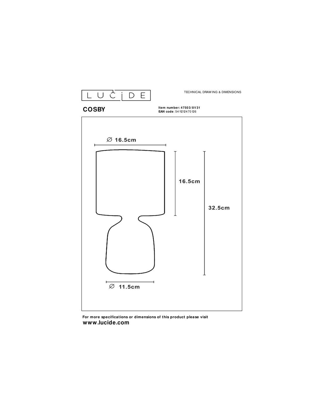 La lampe de table Cosby de la marque Lucide est un luminaire d'intérieur au design rond et élégant, parfait pour apporter une ambiance chaleureuse et conviviale dans un salon, une chambre ou une entrée.