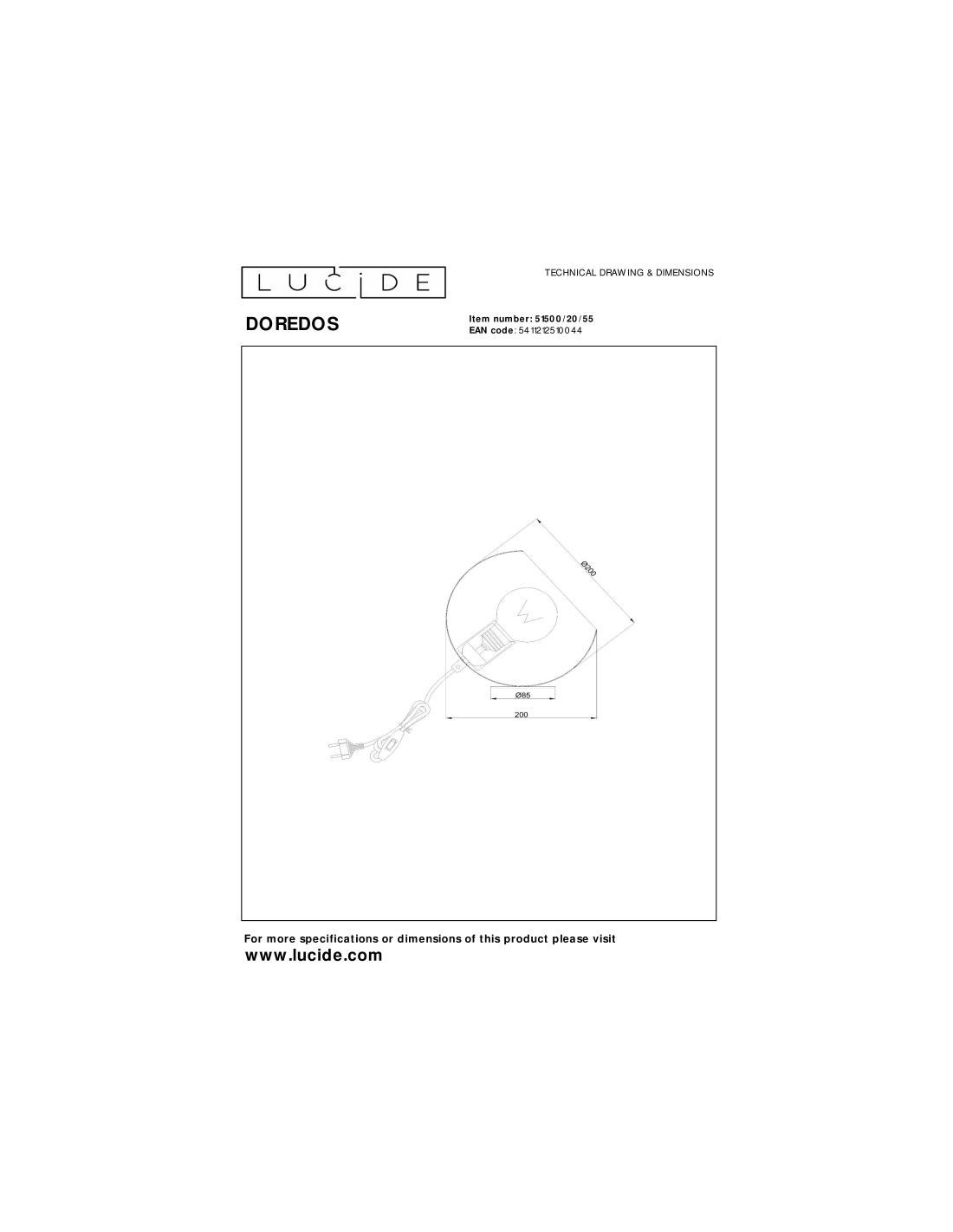 • Consommation énergétique: 1x25W / 230V / Sans intensité variable (Ampoule non incluse)