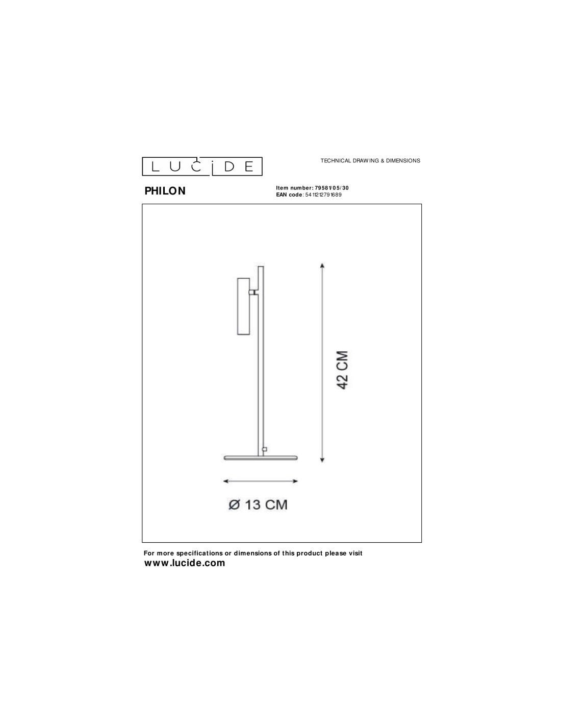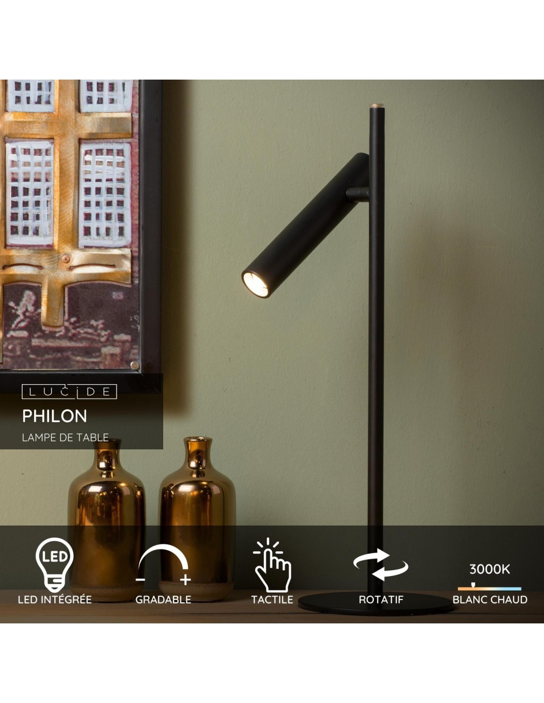 Lampe de table éclairage blanc chaud noire - Lucide - Philon