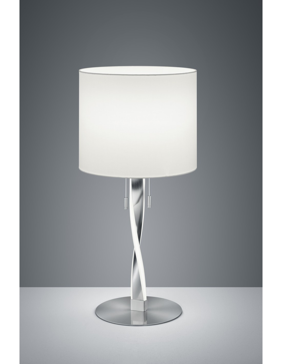 Lampe de table 1xE27 + 2xLED intégrées tissu blanc nickel mat – Trio Nandor