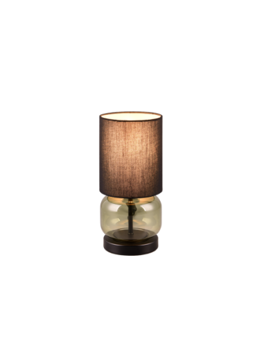 La lampe de table LED Elio de la marque Trio combine élégamment métal, verre et tissu pour une ambiance unique. Son corps en métal noir mat repose sur une base en verre vert, tandis que son abat-jour noir en tissu diffuse une lumière douce et raffinée.