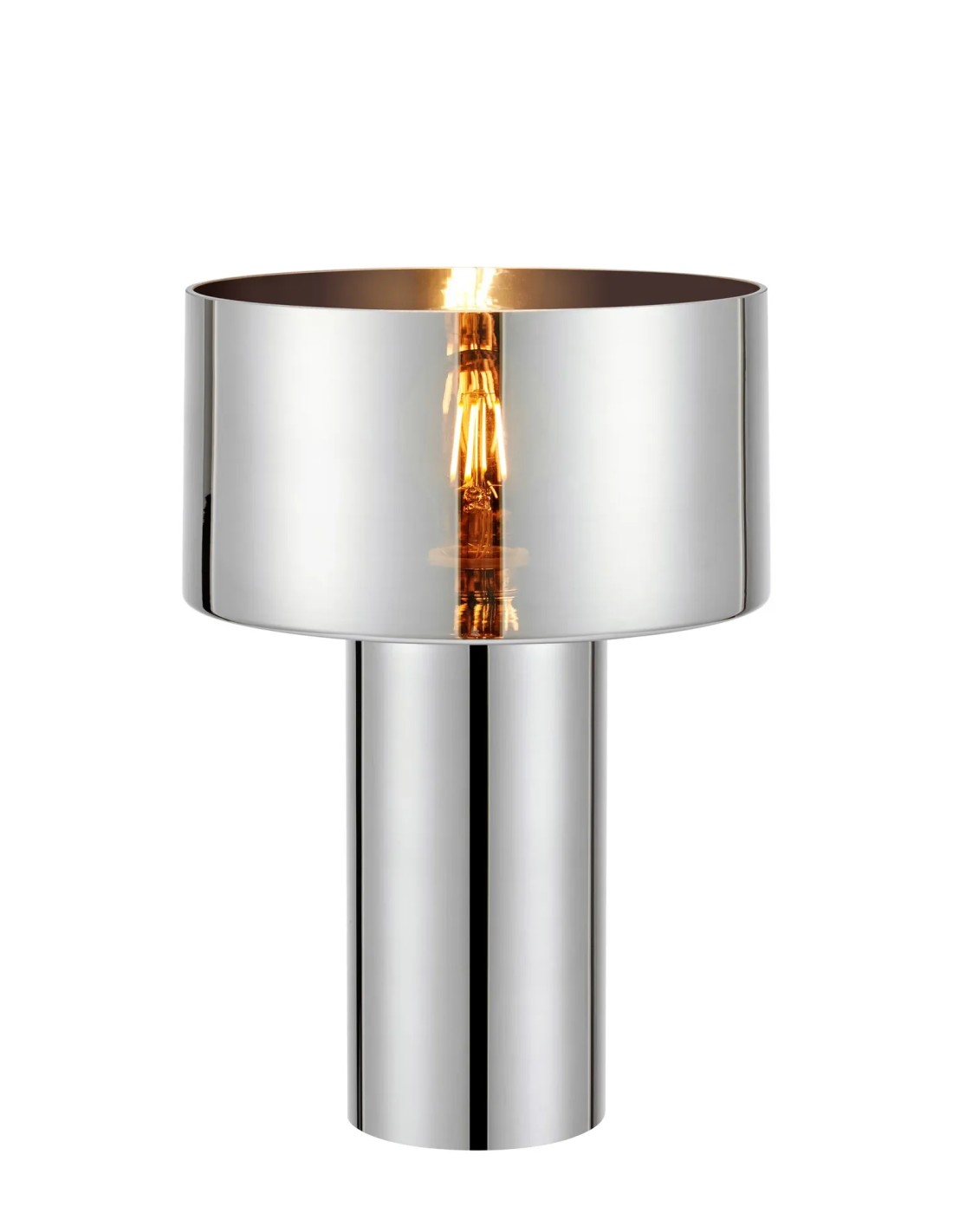 Le vrai + : lampe de table en verre chrome au design arrondi élégant