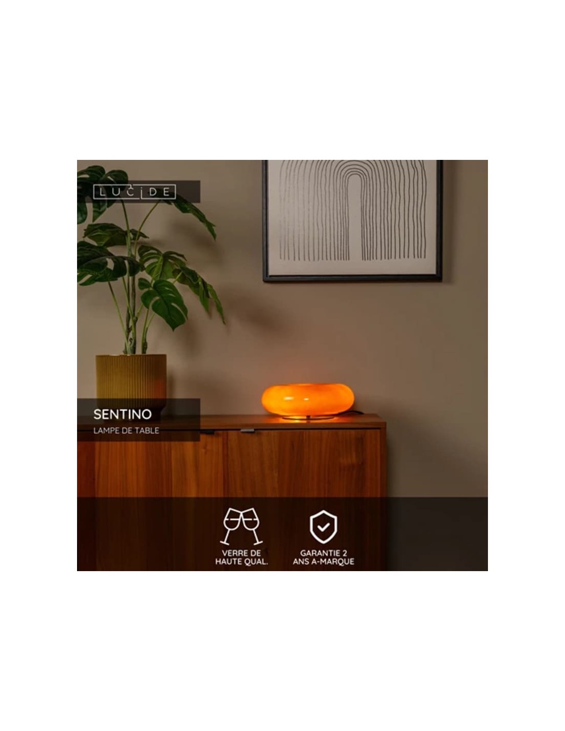 La lampe de table Sentino de Lucide se distingue par son design rétro revisité et sa teinte orange vibrante qui apporte une touche chaleureuse et audacieuse à votre intérieur.