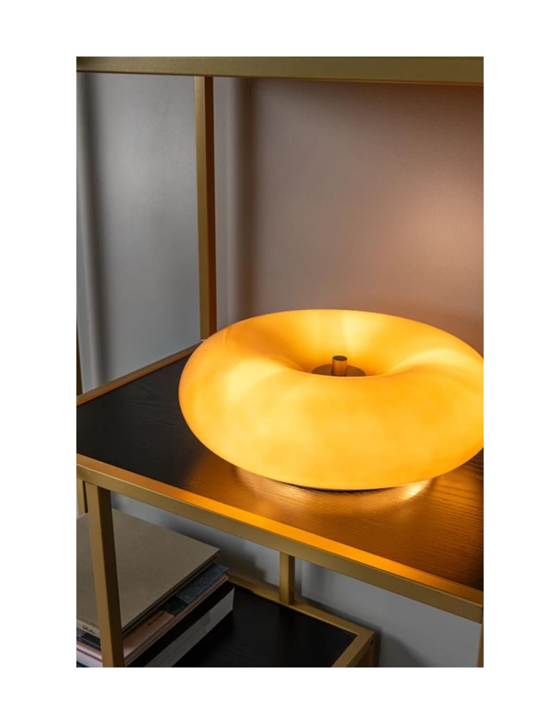 Même éteinte, cette lampe agit comme un véritable objet décoratif grâce à son aspect brillant et ses formes généreuses qui captent subtilement la lumière ambiante.