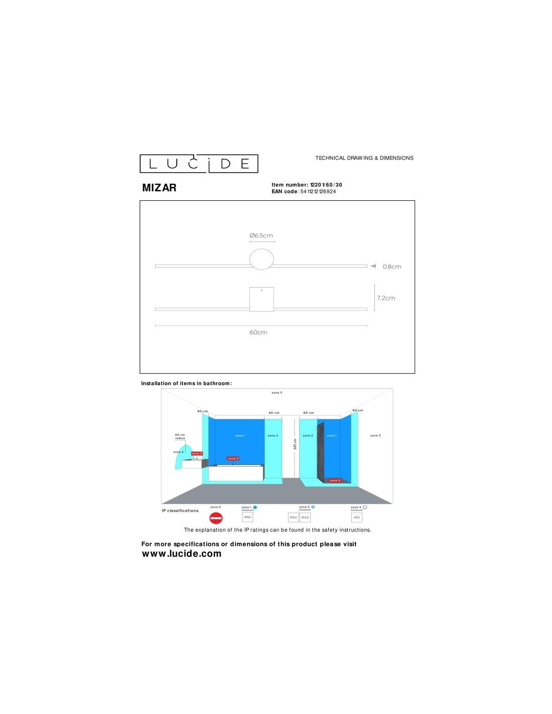 • Peut-être utilisé dans une salle de bain (IP44)