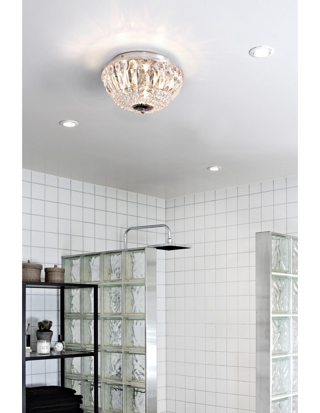 Conçu pour une installation fixe au plafond, ce lustre s'intègre parfaitement dans les salles de bains modernes.