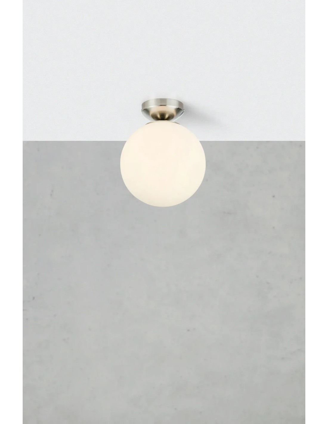 Le vrai + : design classique avec globe en verre blanc idéal pour salle de bain IP44