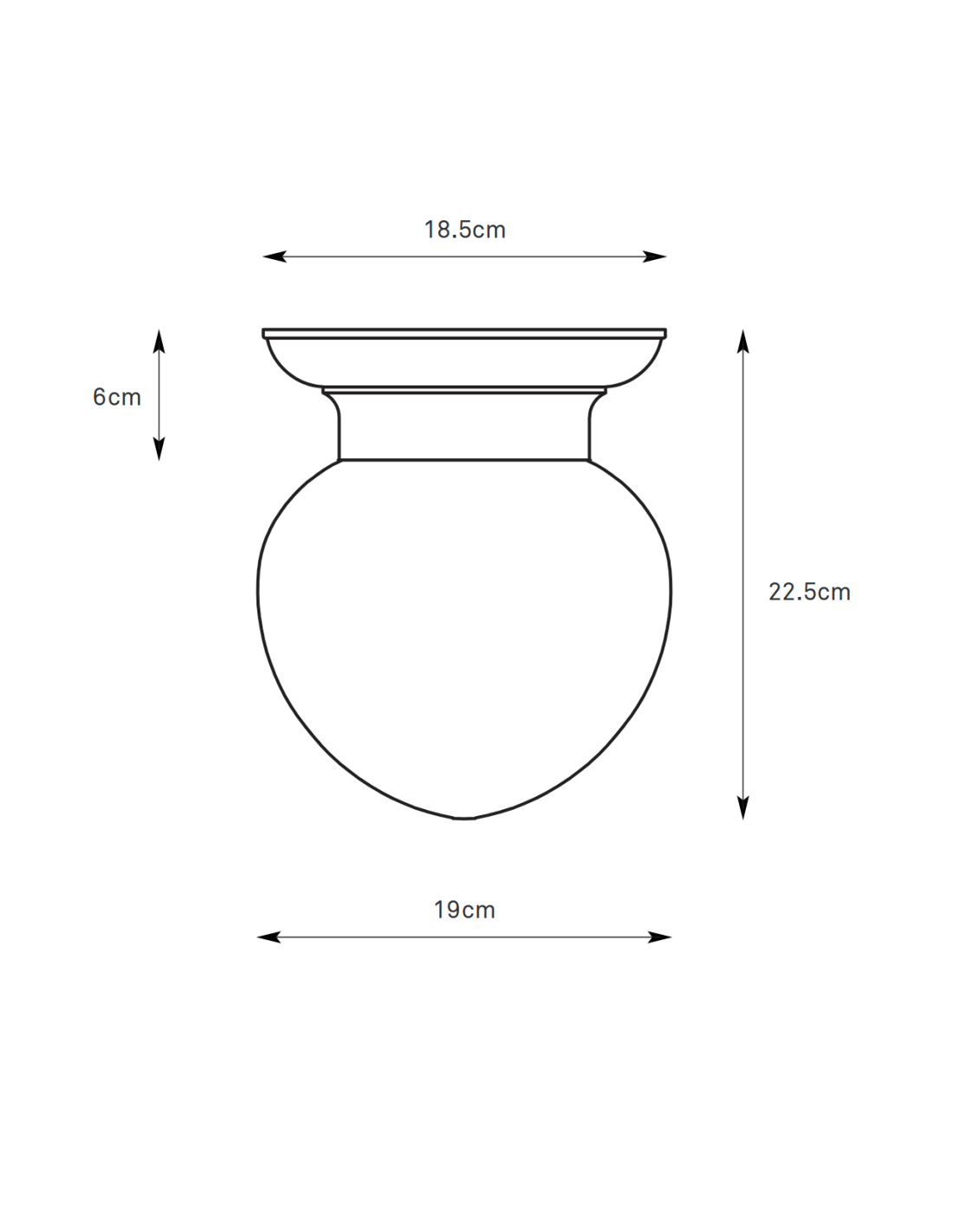 Il associe une base en laiton à un abat-jour en verre blanc de 19 cm de diamètre, assurant une diffusion douce et homogène de la lumière.