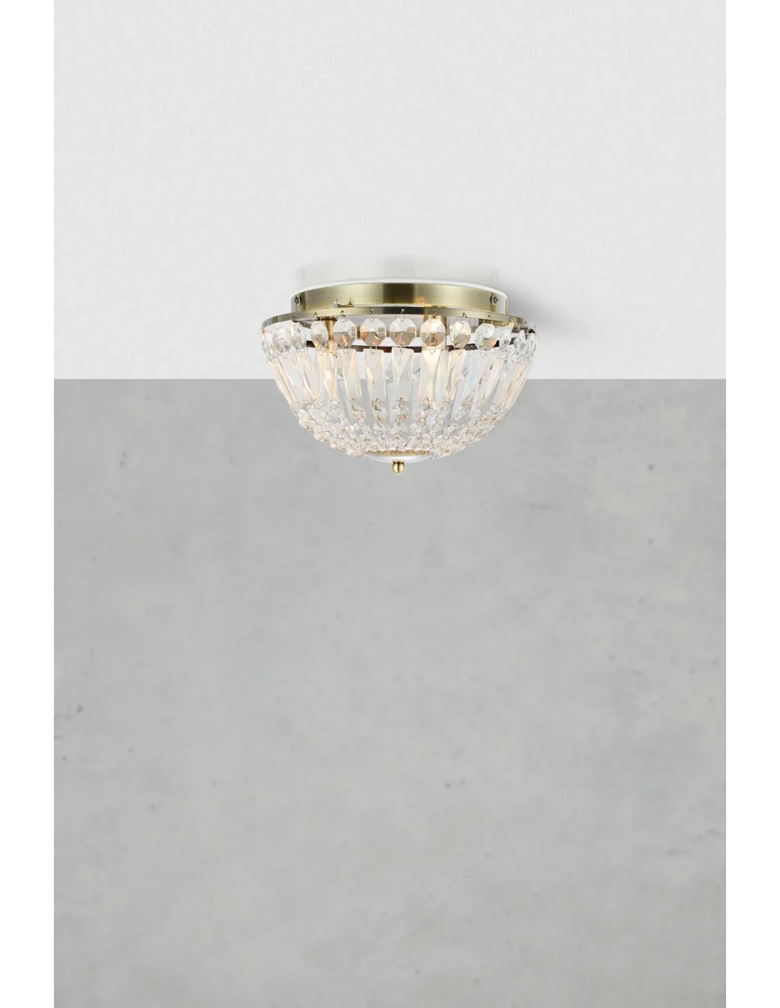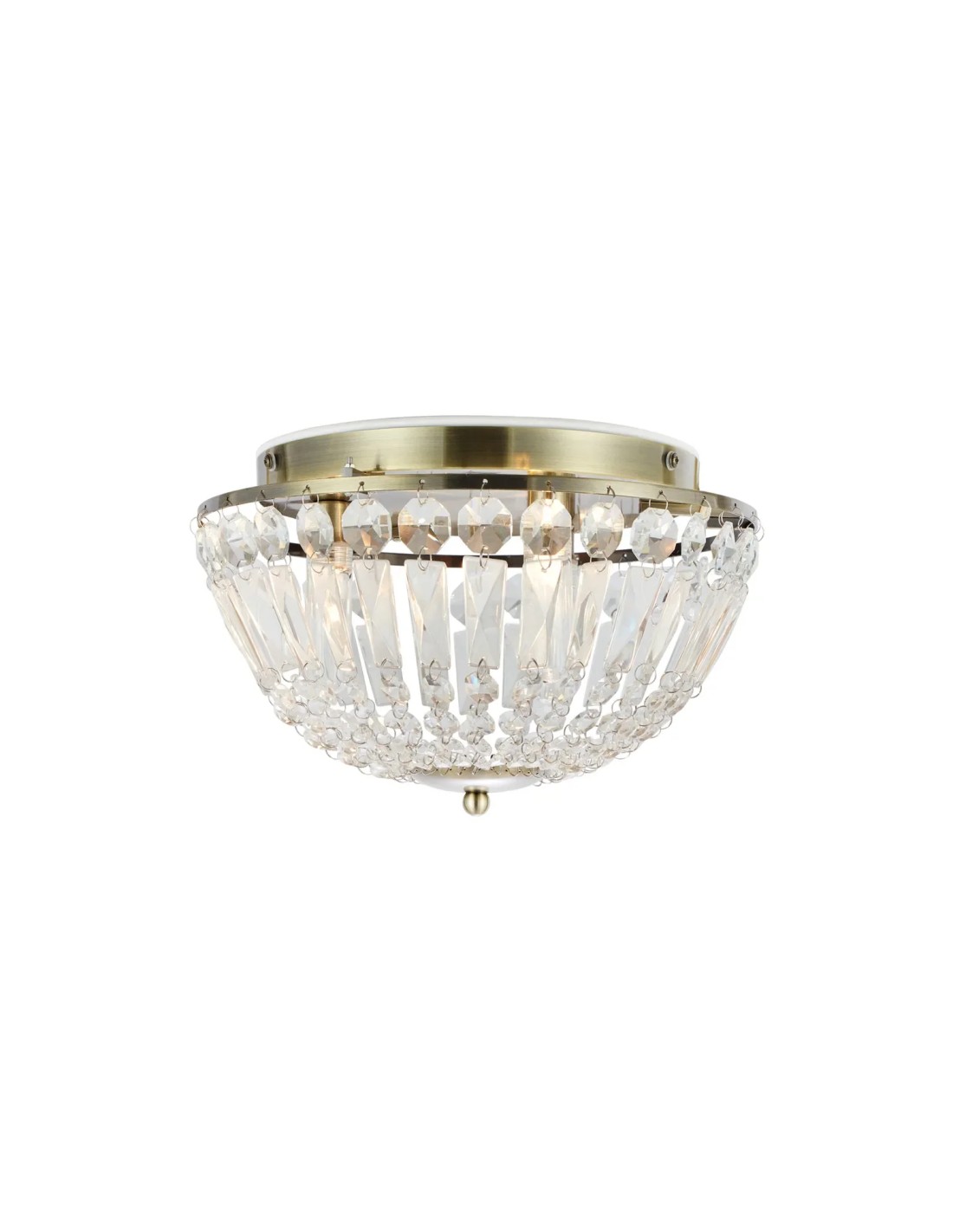 Le plafonnier Estelle de la marque Markslojd est un luminaire de salle de bain au style élégant début XXe siècle, conçu avec une finition en laiton antique et des prismes décoratifs en cristal.